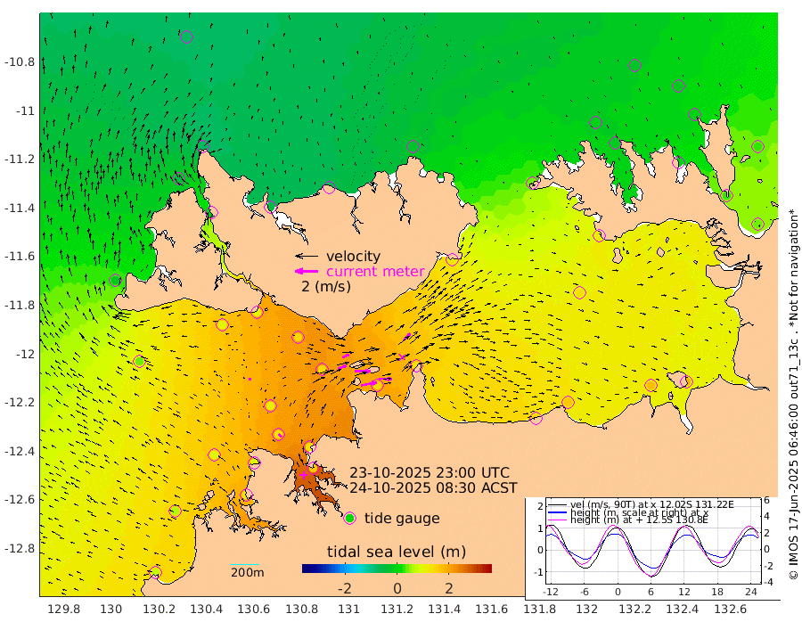 139cm/s 79T +4cm/s rms + 6cm/s 51T. Darwin_C1 52m 117cm/s 92T +4cm/s rms + 7cm/s -161T. Darwin_CW1 22m 75cm/s 71T +4cm/s rms + 8cm/s 61T. Darwin_CW2 34m 92cm/s 44T +3cm/s rms + 9cm/s 98T. Darwin_CW3 22m 136cm/s 90T +5cm/s rms + 7cm/s 88T. Darwin_C3 56m 63cm/s 66T +2cm/s rms + 9cm/s -126T. Darwin_CTbW 22m 21cm/s -68T +1cm/s rms + 1cm/s -47T. DARBGF 30m 34cm/s -44T +4cm/s rms + 3cm/s 80T. NRSDAR 19m -70cm Goodrich Bank 69cm Point Jenny 66cm Native Point 93cm Fish Reef 98cm Tapa Bay -13cm Point Fawcett (Offshore) 121cm Burge Point 91cm Munkunuwa 39cm Beagle A 137cm Parsons Bank 107cm Fenton Patches 137cm Hancox Shoal Area 134cm Nightcliff 164cm Darwin 126cm Charles Point Patches 140cm Glyde Point 145cm Chambers Bay 160cm Point Stuart 133cm Cape Hotham 125cm Christine Reef 175cm West Alligator Head 180cm East Field Island 124cm Two Hills Bay 115cm Camp Point 107cm Medina Inlet South -16cm South Barlow Point -49cm St. Asaph Bay -69cm Cape Van Dieman -56cm Snake Bay -62cm Cache Point -33cm Point Jahleel (Off) 35cm Cape Don -10cm Port Essington -15cm Smith Point - West -12cm NW Peacock Island -31cm North Of Jones Shoal -7cm Peacock Island 32cm Point David -5cm D'urville Point 38cm Copeland Island 30cm One Tree Point