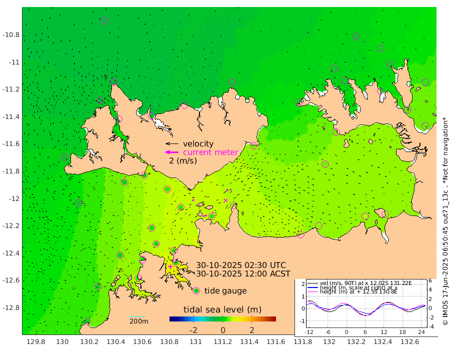 66cm/s 78T +4cm/s rms + 6cm/s 51T. Darwin_C1 52m 15cm/s 91T +4cm/s rms + 7cm/s -161T. Darwin_CW1 22m 8cm/s 69T +4cm/s rms + 8cm/s 61T. Darwin_CW2 34m 42cm/s 43T +3cm/s rms + 9cm/s 98T. Darwin_CW3 22m 8cm/s 94T +5cm/s rms + 7cm/s 88T. Darwin_C3 56m 37cm/s 64T +2cm/s rms + 9cm/s -126T. Darwin_CTbW 22m 11cm/s -89T +1cm/s rms + 1cm/s -47T. DARBGF 30m 13cm/s -47T +4cm/s rms + 3cm/s 80T. NRSDAR 19m -39cm Goodrich Bank 1cm Point Jenny 0cm Native Point -5cm Fish Reef 12cm Tapa Bay -30cm Point Fawcett (Offshore) 3cm Burge Point -3cm Munkunuwa -17cm Beagle A 23cm Parsons Bank 4cm Fenton Patches 33cm Hancox Shoal Area 26cm Nightcliff 21cm Darwin 8cm Charles Point Patches 32cm Glyde Point 55cm Chambers Bay 56cm Point Stuart 39cm Cape Hotham 45cm Christine Reef 61cm West Alligator Head 63cm East Field Island 42cm Two Hills Bay 35cm Camp Point -1cm Medina Inlet South -31cm South Barlow Point -39cm St. Asaph Bay -37cm Cape Van Dieman -32cm Snake Bay -33cm Cache Point -19cm Point Jahleel (Off) 7cm Cape Don -7cm Port Essington -4cm Smith Point - West 1cm NW Peacock Island -16cm North Of Jones Shoal -3cm Peacock Island 36cm Point David 6cm D'urville Point 40cm Copeland Island 25cm One Tree Point