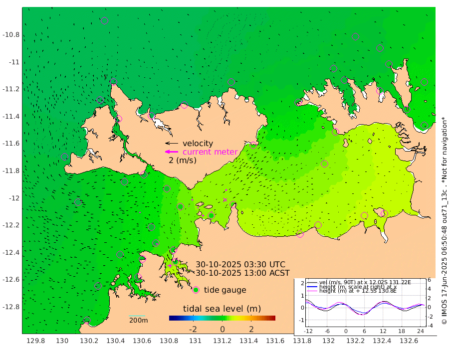 25cm/s 80T +4cm/s rms + 6cm/s 51T. Darwin_C1 52m 8cm/s -79T +4cm/s rms + 7cm/s -161T. Darwin_CW1 22m 6cm/s -91T +4cm/s rms + 8cm/s 61T. Darwin_CW2 34m 24cm/s 42T +3cm/s rms + 9cm/s 98T. Darwin_CW3 22m 15cm/s -93T +5cm/s rms + 7cm/s 88T. Darwin_C3 56m 16cm/s 63T +2cm/s rms + 9cm/s -126T. Darwin_CTbW 22m 21cm/s -89T +1cm/s rms + 1cm/s -47T. DARBGF 30m 25cm/s -55T +4cm/s rms + 3cm/s 80T. NRSDAR 19m -61cm Goodrich Bank -31cm Point Jenny -34cm Native Point -34cm Fish Reef -22cm Tapa Bay -57cm Point Fawcett (Offshore) -31cm Burge Point -38cm Munkunuwa -46cm Beagle A -14cm Parsons Bank -26cm Fenton Patches 1cm Hancox Shoal Area -4cm Nightcliff -14cm Darwin -28cm Charles Point Patches 16cm Glyde Point 60cm Chambers Bay 63cm Point Stuart 31cm Cape Hotham 44cm Christine Reef 72cm West Alligator Head 84cm East Field Island 38cm Two Hills Bay 31cm Camp Point -35cm Medina Inlet South -62cm South Barlow Point -65cm St. Asaph Bay -60cm Cape Van Dieman -57cm Snake Bay -54cm Cache Point -39cm Point Jahleel (Off) -12cm Cape Don -30cm Port Essington -28cm Smith Point - West -22cm NW Peacock Island -35cm North Of Jones Shoal -10cm Peacock Island 13cm Point David -19cm D'urville Point 18cm Copeland Island 2cm One Tree Point
