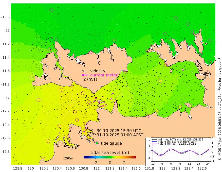 118cm/s 78T +4cm/s rms + 6cm/s 51T. Darwin_C1 52m 65cm/s 92T +4cm/s rms + 7cm/s -161T. Darwin_CW1 22m 52cm/s 71T +4cm/s rms + 8cm/s 61T. Darwin_CW2 34m 59cm/s 50T +3cm/s rms + 9cm/s 98T. Darwin_CW3 22m 67cm/s 90T +5cm/s rms + 7cm/s 88T. Darwin_C3 56m 72cm/s 65T +2cm/s rms + 9cm/s -126T. Darwin_CTbW 22m 17cm/s 79T +1cm/s rms + 1cm/s -47T. DARBGF 30m 11cm/s 97T +4cm/s rms + 3cm/s 80T. NRSDAR 19m 12cm Goodrich Bank 106cm Point Jenny 105cm Native Point 102cm Fish Reef 109cm Tapa Bay 59cm Point Fawcett (Offshore) 117cm Burge Point 96cm Munkunuwa 97cm Beagle A 105cm Parsons Bank 118cm Fenton Patches 107cm Hancox Shoal Area 126cm Nightcliff 114cm Darwin 103cm Charles Point Patches 90cm Glyde Point 84cm Chambers Bay 73cm Point Stuart 75cm Cape Hotham 87cm Christine Reef 80cm West Alligator Head 76cm East Field Island 68cm Two Hills Bay 67cm Camp Point 104cm Medina Inlet South 48cm South Barlow Point 37cm St. Asaph Bay 13cm Cape Van Dieman 14cm Snake Bay 18cm Cache Point 23cm Point Jahleel (Off) 45cm Cape Don 18cm Port Essington 23cm Smith Point - West 17cm NW Peacock Island 15cm North Of Jones Shoal 5cm Peacock Island 11cm Point David 19cm D'urville Point 11cm Copeland Island 15cm One Tree Point