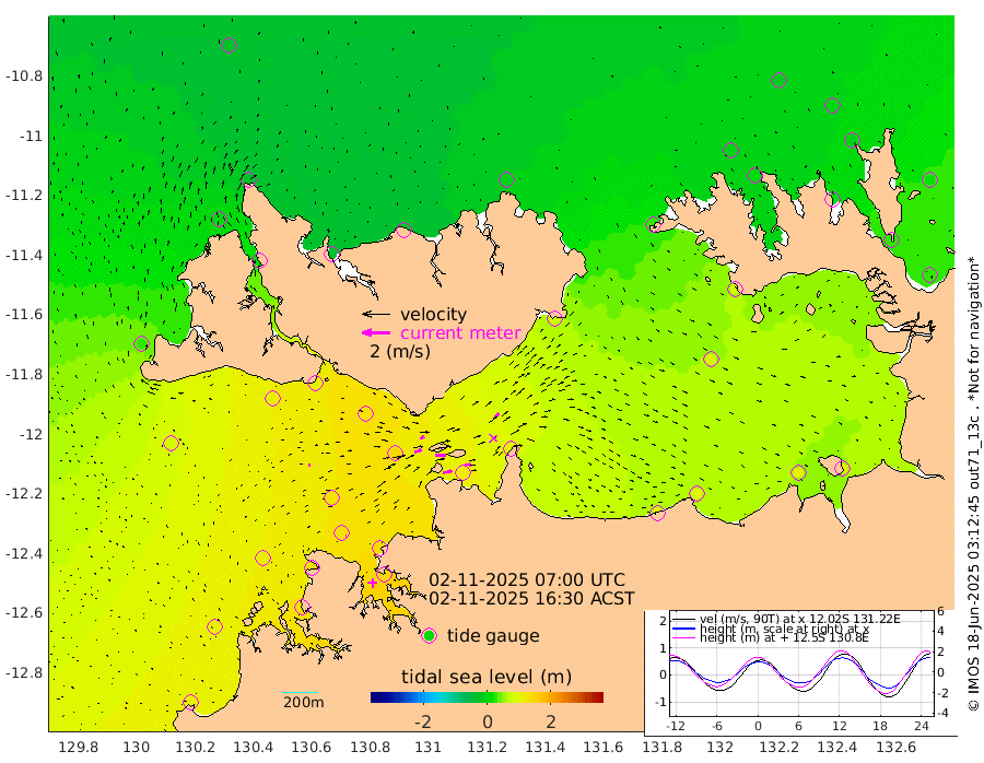 64cm/s 78T +4cm/s rms + 6cm/s 51T. Darwin_C1 52m 46cm/s 92T +4cm/s rms + 7cm/s -161T. Darwin_CW1 22m 50cm/s 73T +4cm/s rms + 8cm/s 61T. Darwin_CW2 34m 44cm/s 39T +3cm/s rms + 9cm/s 98T. Darwin_CW3 22m 75cm/s 89T +5cm/s rms + 7cm/s 88T. Darwin_C3 56m 31cm/s 66T +2cm/s rms + 9cm/s -126T. Darwin_CTbW 22m 11cm/s 70T +1cm/s rms + 1cm/s -47T. DARBGF 30m 8cm/s 94T +4cm/s rms + 3cm/s 80T. NRSDAR 19m -29cm Goodrich Bank 105cm Point Jenny 102cm Native Point 107cm Fish Reef 124cm Tapa Bay 32cm Point Fawcett (Offshore) 127cm Burge Point 101cm Munkunuwa 86cm Beagle A 124cm Parsons Bank 130cm Fenton Patches 137cm Hancox Shoal Area 145cm Nightcliff 141cm Darwin 125cm Charles Point Patches 113cm Glyde Point 113cm Chambers Bay 100cm Point Stuart 102cm Cape Hotham 97cm Christine Reef 108cm West Alligator Head 107cm East Field Island 81cm Two Hills Bay 87cm Camp Point 108cm Medina Inlet South 16cm South Barlow Point 1cm St. Asaph Bay -26cm Cape Van Dieman -26cm Snake Bay -21cm Cache Point -4cm Point Jahleel (Off) 31cm Cape Don 0cm Port Essington 3cm Smith Point - West 1cm NW Peacock Island -13cm North Of Jones Shoal -3cm Peacock Island 24cm Point David 6cm D'urville Point 29cm Copeland Island 17cm One Tree Point
