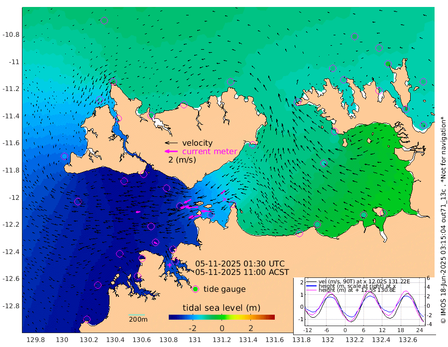 205cm/s -102T +4cm/s rms + 6cm/s 51T. Darwin_C1 52m 157cm/s -90T +4cm/s rms + 7cm/s -161T. Darwin_CW1 22m 135cm/s -107T +4cm/s rms + 8cm/s 61T. Darwin_CW2 34m 85cm/s -131T +3cm/s rms + 9cm/s 98T. Darwin_CW3 22m 183cm/s -91T +5cm/s rms + 7cm/s 88T. Darwin_C3 56m 121cm/s -115T +2cm/s rms + 9cm/s -126T. Darwin_CTbW 22m 71cm/s -94T +1cm/s rms + 1cm/s -47T. DARBGF 30m 57cm/s -65T +4cm/s rms + 3cm/s 80T. NRSDAR 19m -71cm Goodrich Bank -294cm Point Jenny -294cm Native Point -305cm Fish Reef -318cm Tapa Bay -193cm Point Fawcett (Offshore) -335cm Burge Point -297cm Munkunuwa -277cm Beagle A -317cm Parsons Bank -330cm Fenton Patches -306cm Hancox Shoal Area -329cm Nightcliff -339cm Darwin -325cm Charles Point Patches -227cm Glyde Point -132cm Chambers Bay -112cm Point Stuart -180cm Cape Hotham -130cm Christine Reef -109cm West Alligator Head -74cm East Field Island -130cm Two Hills Bay -135cm Camp Point -307cm Medina Inlet South -173cm South Barlow Point -136cm St. Asaph Bay -80cm Cape Van Dieman -87cm Snake Bay -83cm Cache Point -93cm Point Jahleel (Off) -126cm Cape Don -97cm Port Essington -102cm Smith Point - West -94cm NW Peacock Island -74cm North Of Jones Shoal -28cm Peacock Island -101cm Point David -103cm D'urville Point -100cm Copeland Island -98cm One Tree Point