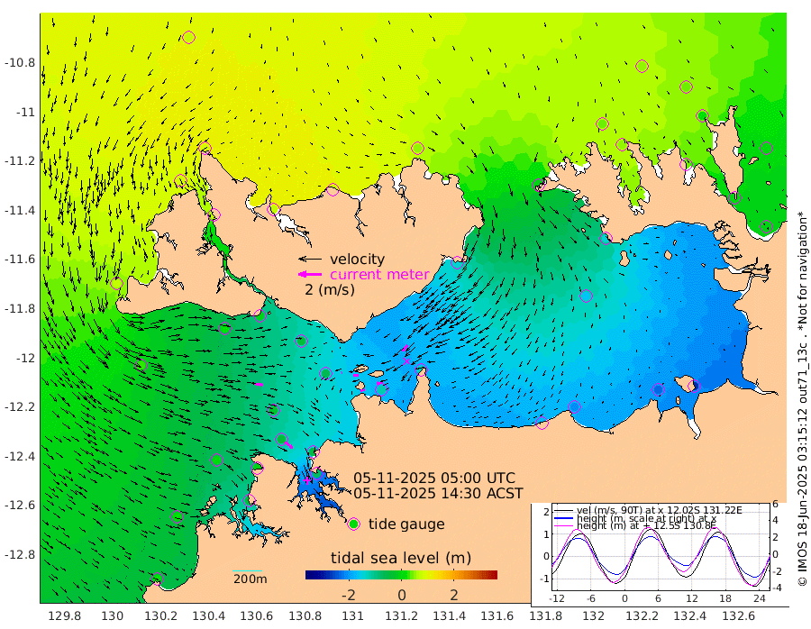 38cm/s -101T +4cm/s rms + 6cm/s 51T. Darwin_C1 52m 52cm/s -93T +4cm/s rms + 7cm/s -161T. Darwin_CW1 22m 2cm/s 59T +4cm/s rms + 8cm/s 61T. Darwin_CW2 34m 67cm/s -143T +3cm/s rms + 9cm/s 98T. Darwin_CW3 22m 40cm/s -87T +5cm/s rms + 7cm/s 88T. Darwin_C3 56m 1cm/s -82T +2cm/s rms + 9cm/s -126T. Darwin_CTbW 22m 76cm/s 97T +1cm/s rms + 1cm/s -47T. DARBGF 30m 84cm/s 127T +4cm/s rms + 3cm/s 80T. NRSDAR 19m 78cm Goodrich Bank 13cm Point Jenny 14cm Native Point 1cm Fish Reef -11cm Tapa Bay 77cm Point Fawcett (Offshore) -35cm Burge Point 16cm Munkunuwa 26cm Beagle A -37cm Parsons Bank -34cm Fenton Patches -60cm Hancox Shoal Area -51cm Nightcliff -72cm Darwin -36cm Charles Point Patches -113cm Glyde Point -178cm Chambers Bay -205cm Point Stuart -128cm Cape Hotham -164cm Christine Reef -233cm West Alligator Head -275cm East Field Island -138cm Two Hills Bay -141cm Camp Point -10cm Medina Inlet South 77cm South Barlow Point 89cm St. Asaph Bay 86cm Cape Van Dieman 77cm Snake Bay 75cm Cache Point 47cm Point Jahleel (Off) -9cm Cape Don 41cm Port Essington 47cm Smith Point - West 38cm NW Peacock Island 55cm North Of Jones Shoal 18cm Peacock Island 0cm Point David 40cm D'urville Point -5cm Copeland Island 5cm One Tree Point