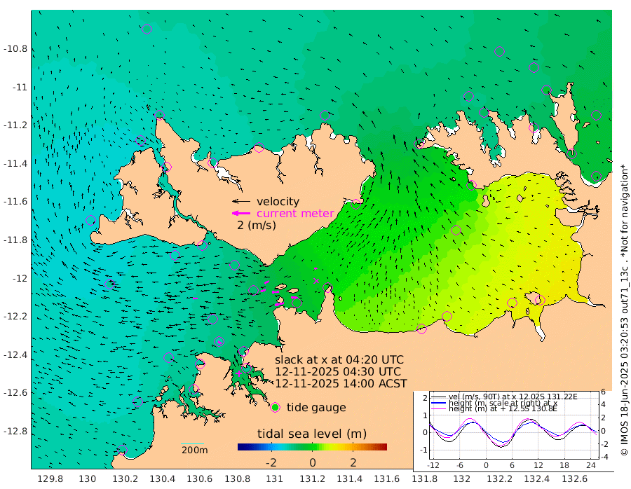 103cm/s -102T +4cm/s rms + 6cm/s 51T. Darwin_C1 52m 73cm/s -88T +4cm/s rms + 7cm/s -161T. Darwin_CW1 22m 59cm/s -108T +4cm/s rms + 8cm/s 61T. Darwin_CW2 34m 29cm/s -111T +3cm/s rms + 9cm/s 98T. Darwin_CW3 22m 77cm/s -92T +5cm/s rms + 7cm/s 88T. Darwin_C3 56m 57cm/s -116T +2cm/s rms + 9cm/s -126T. Darwin_CTbW 22m 52cm/s -91T +1cm/s rms + 1cm/s -47T. DARBGF 30m 45cm/s -60T +4cm/s rms + 3cm/s 80T. NRSDAR 19m -97cm Goodrich Bank -111cm Point Jenny -115cm Native Point -111cm Fish Reef -115cm Tapa Bay -126cm Point Fawcett (Offshore) -106cm Burge Point -125cm Munkunuwa -111cm Beagle A -100cm Parsons Bank -99cm Fenton Patches -83cm Hancox Shoal Area -98cm Nightcliff -105cm Darwin -119cm Charles Point Patches -32cm Glyde Point 52cm Chambers Bay 67cm Point Stuart 0cm Cape Hotham 39cm Christine Reef 82cm West Alligator Head 115cm East Field Island 20cm Two Hills Bay 14cm Camp Point -124cm Medina Inlet South -128cm South Barlow Point -119cm St. Asaph Bay -100cm Cape Van Dieman -107cm Snake Bay -91cm Cache Point -78cm Point Jahleel (Off) -53cm Cape Don -71cm Port Essington -71cm Smith Point - West -63cm NW Peacock Island -77cm North Of Jones Shoal -25cm Peacock Island -37cm Point David -64cm D'urville Point -28cm Copeland Island -44cm One Tree Point