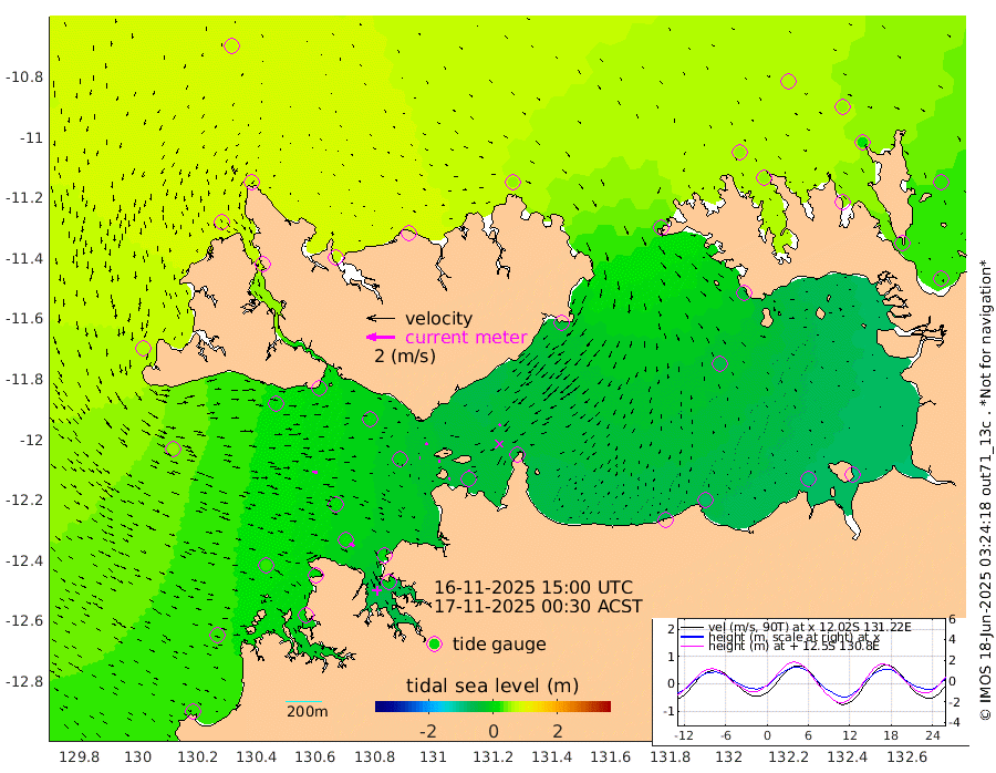 10cm/s 74T +4cm/s rms + 6cm/s 51T. Darwin_C1 52m 10cm/s -92T +4cm/s rms + 7cm/s -161T. Darwin_CW1 22m 5cm/s 74T +4cm/s rms + 8cm/s 61T. Darwin_CW2 34m 15cm/s -148T +3cm/s rms + 9cm/s 98T. Darwin_CW3 22m 8cm/s -87T +5cm/s rms + 7cm/s 88T. Darwin_C3 56m 19cm/s 63T +2cm/s rms + 9cm/s -126T. Darwin_CTbW 22m 35cm/s 96T +1cm/s rms + 1cm/s -47T. DARBGF 30m 37cm/s 126T +4cm/s rms + 3cm/s 80T. NRSDAR 19m 70cm Goodrich Bank 30cm Point Jenny 32cm Native Point 25cm Fish Reef 17cm Tapa Bay 62cm Point Fawcett (Offshore) 9cm Burge Point 18cm Munkunuwa 48cm Beagle A 5cm Parsons Bank 19cm Fenton Patches -4cm Hancox Shoal Area 10cm Nightcliff -3cm Darwin 13cm Charles Point Patches -24cm Glyde Point -58cm Chambers Bay -73cm Point Stuart -35cm Cape Hotham -46cm Christine Reef -85cm West Alligator Head -101cm East Field Island -36cm Two Hills Bay -37cm Camp Point 22cm Medina Inlet South 70cm South Barlow Point 71cm St. Asaph Bay 72cm Cape Van Dieman 74cm Snake Bay 69cm Cache Point 55cm Point Jahleel (Off) 28cm Cape Don 50cm Port Essington 56cm Smith Point - West 52cm NW Peacock Island 60cm North Of Jones Shoal 20cm Peacock Island 27cm Point David 53cm D'urville Point 23cm Copeland Island 33cm One Tree Point