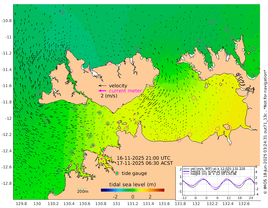 10cm/s 79T +4cm/s rms + 6cm/s 51T. Darwin_C1 52m 25cm/s 92T +4cm/s rms + 7cm/s -161T. Darwin_CW1 22m 5cm/s 56T +4cm/s rms + 8cm/s 61T. Darwin_CW2 34m 26cm/s 40T +3cm/s rms + 9cm/s 98T. Darwin_CW3 22m 22cm/s 93T +5cm/s rms + 7cm/s 88T. Darwin_C3 56m 3cm/s -113T +2cm/s rms + 9cm/s -126T. Darwin_CTbW 22m 42cm/s -84T +1cm/s rms + 1cm/s -47T. DARBGF 30m 47cm/s -54T +4cm/s rms + 3cm/s 80T. NRSDAR 19m -67cm Goodrich Bank -13cm Point Jenny -12cm Native Point -2cm Fish Reef 1cm Tapa Bay -61cm Point Fawcett (Offshore) 22cm Burge Point -2cm Munkunuwa -26cm Beagle A 22cm Parsons Bank 14cm Fenton Patches 26cm Hancox Shoal Area 12cm Nightcliff 39cm Darwin 16cm Charles Point Patches 57cm Glyde Point 82cm Chambers Bay 105cm Point Stuart 59cm Cape Hotham 73cm Christine Reef 119cm West Alligator Head 140cm East Field Island 61cm Two Hills Bay 66cm Camp Point 3cm Medina Inlet South -61cm South Barlow Point -72cm St. Asaph Bay -70cm Cape Van Dieman -69cm Snake Bay -67cm Cache Point -51cm Point Jahleel (Off) -13cm Cape Don -42cm Port Essington -50cm Smith Point - West -46cm NW Peacock Island -62cm North Of Jones Shoal -20cm Peacock Island -20cm Point David -46cm D'urville Point -17cm Copeland Island -26cm One Tree Point