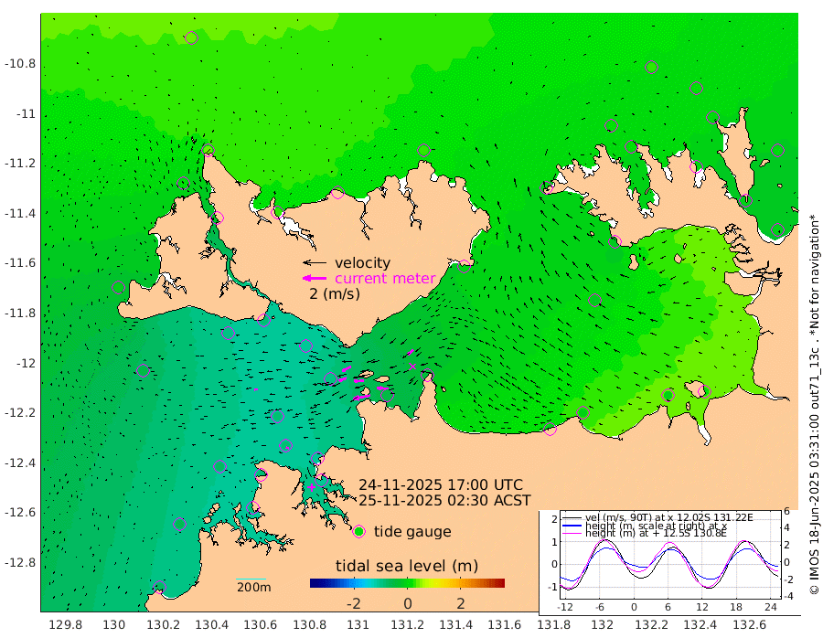 150cm/s -102T +4cm/s rms + 6cm/s 51T. Darwin_C1 52m 93cm/s -89T +4cm/s rms + 7cm/s -161T. Darwin_CW1 22m 70cm/s -109T +4cm/s rms + 8cm/s 61T. Darwin_CW2 34m 63cm/s -130T +3cm/s rms + 9cm/s 98T. Darwin_CW3 22m 81cm/s -91T +5cm/s rms + 7cm/s 88T. Darwin_C3 56m 85cm/s -115T +2cm/s rms + 9cm/s -126T. Darwin_CTbW 22m 29cm/s -93T +1cm/s rms + 1cm/s -47T. DARBGF 30m 25cm/s -75T +4cm/s rms + 3cm/s 80T. NRSDAR 19m 44cm Goodrich Bank -68cm Point Jenny -67cm Native Point -72cm Fish Reef -85cm Tapa Bay -9cm Point Fawcett (Offshore) -90cm Burge Point -96cm Munkunuwa -47cm Beagle A -105cm Parsons Bank -85cm Fenton Patches -99cm Hancox Shoal Area -110cm Nightcliff -102cm Darwin -80cm Charles Point Patches -52cm Glyde Point -19cm Chambers Bay -9cm Point Stuart -37cm Cape Hotham -19cm Christine Reef -10cm West Alligator Head 11cm East Field Island -16cm Two Hills Bay -9cm Camp Point -84cm Medina Inlet South -12cm South Barlow Point 12cm St. Asaph Bay 39cm Cape Van Dieman 33cm Snake Bay 42cm Cache Point 25cm Point Jahleel (Off) -1cm Cape Don 18cm Port Essington 11cm Smith Point - West 15cm NW Peacock Island 26cm North Of Jones Shoal 7cm Peacock Island -3cm Point David 7cm D'urville Point -7cm Copeland Island 2cm One Tree Point