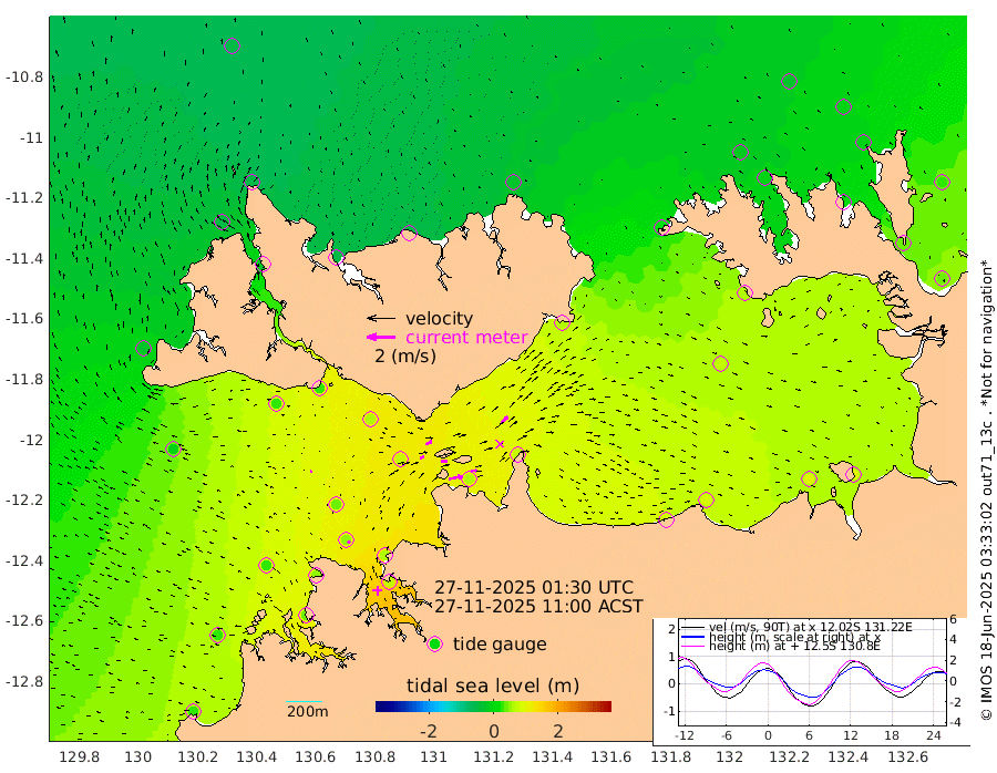 97cm/s 78T +4cm/s rms + 6cm/s 51T. Darwin_C1 52m 42cm/s 93T +4cm/s rms + 7cm/s -161T. Darwin_CW1 22m 30cm/s 70T +4cm/s rms + 8cm/s 61T. Darwin_CW2 34m 65cm/s 43T +3cm/s rms + 9cm/s 98T. Darwin_CW3 22m 45cm/s 90T +5cm/s rms + 7cm/s 88T. Darwin_C3 56m 48cm/s 65T +2cm/s rms + 9cm/s -126T. Darwin_CTbW 22m 12cm/s -81T +1cm/s rms + 1cm/s -47T. DARBGF 30m 17cm/s -42T +4cm/s rms + 3cm/s 80T. NRSDAR 19m -54cm Goodrich Bank 25cm Point Jenny 23cm Native Point 24cm Fish Reef 45cm Tapa Bay -28cm Point Fawcett (Offshore) 40cm Burge Point 30cm Munkunuwa -2cm Beagle A 63cm Parsons Bank 38cm Fenton Patches 74cm Hancox Shoal Area 65cm Nightcliff 68cm Darwin 47cm Charles Point Patches 66cm Glyde Point 86cm Chambers Bay 86cm Point Stuart 69cm Cape Hotham 71cm Christine Reef 95cm West Alligator Head 96cm East Field Island 65cm Two Hills Bay 59cm Camp Point 33cm Medina Inlet South -31cm South Barlow Point -47cm St. Asaph Bay -52cm Cape Van Dieman -45cm Snake Bay -48cm Cache Point -27cm Point Jahleel (Off) 12cm Cape Don -12cm Port Essington -10cm Smith Point - West -4cm NW Peacock Island -26cm North Of Jones Shoal -6cm Peacock Island 39cm Point David 2cm D'urville Point 45cm Copeland Island 26cm One Tree Point