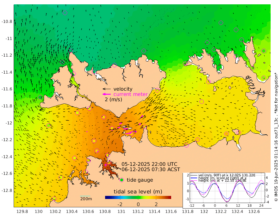 152cm/s 79T +4cm/s rms + 6cm/s 51T. Darwin_C1 52m 120cm/s 92T +4cm/s rms + 7cm/s -161T. Darwin_CW1 22m 65cm/s 70T +4cm/s rms + 8cm/s 61T. Darwin_CW2 34m 101cm/s 42T +3cm/s rms + 9cm/s 98T. Darwin_CW3 22m 111cm/s 90T +5cm/s rms + 7cm/s 88T. Darwin_C3 56m 70cm/s 65T +2cm/s rms + 9cm/s -126T. Darwin_CTbW 22m 22cm/s -73T +1cm/s rms + 1cm/s -47T. DARBGF 30m 31cm/s -45T +4cm/s rms + 3cm/s 80T. NRSDAR 19m -83cm Goodrich Bank 80cm Point Jenny 79cm Native Point 98cm Fish Reef 112cm Tapa Bay -25cm Point Fawcett (Offshore) 136cm Burge Point 99cm Munkunuwa 49cm Beagle A 151cm Parsons Bank 126cm Fenton Patches 153cm Hancox Shoal Area 143cm Nightcliff 171cm Darwin 130cm Charles Point Patches 150cm Glyde Point 147cm Chambers Bay 167cm Point Stuart 142cm Cape Hotham 133cm Christine Reef 182cm West Alligator Head 187cm East Field Island 125cm Two Hills Bay 123cm Camp Point 107cm Medina Inlet South -27cm South Barlow Point -63cm St. Asaph Bay -80cm Cape Van Dieman -70cm Snake Bay -75cm Cache Point -42cm Point Jahleel (Off) 30cm Cape Don -18cm Port Essington -22cm Smith Point - West -16cm NW Peacock Island -51cm North Of Jones Shoal -13cm Peacock Island 42cm Point David -7cm D'urville Point 50cm Copeland Island 28cm One Tree Point