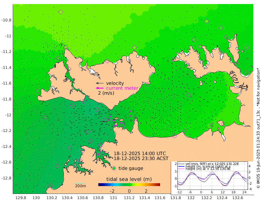 96cm/s -102T +4cm/s rms + 6cm/s 51T. Darwin_C1 52m 88cm/s -90T +4cm/s rms + 7cm/s -161T. Darwin_CW1 22m 51cm/s -107T +4cm/s rms + 8cm/s 61T. Darwin_CW2 34m 37cm/s -132T +3cm/s rms + 9cm/s 98T. Darwin_CW3 22m 71cm/s -91T +5cm/s rms + 7cm/s 88T. Darwin_C3 56m 56cm/s -115T +2cm/s rms + 9cm/s -126T. Darwin_CTbW 22m 24cm/s -91T +1cm/s rms + 1cm/s -47T. DARBGF 30m 22cm/s -69T +4cm/s rms + 3cm/s 80T. NRSDAR 19m 50cm Goodrich Bank -45cm Point Jenny -42cm Native Point -54cm Fish Reef -57cm Tapa Bay 2cm Point Fawcett (Offshore) -56cm Burge Point -62cm Munkunuwa -26cm Beagle A -66cm Parsons Bank -55cm Fenton Patches -63cm Hancox Shoal Area -68cm Nightcliff -69cm Darwin -56cm Charles Point Patches -37cm Glyde Point -15cm Chambers Bay -11cm Point Stuart -23cm Cape Hotham -8cm Christine Reef -12cm West Alligator Head 1cm East Field Island -8cm Two Hills Bay -4cm Camp Point -56cm Medina Inlet South 8cm South Barlow Point 24cm St. Asaph Bay 46cm Cape Van Dieman 46cm Snake Bay 47cm Cache Point 35cm Point Jahleel (Off) 9cm Cape Don 25cm Port Essington 24cm Smith Point - West 28cm NW Peacock Island 36cm North Of Jones Shoal 11cm Peacock Island 15cm Point David 22cm D'urville Point 10cm Copeland Island 17cm One Tree Point
