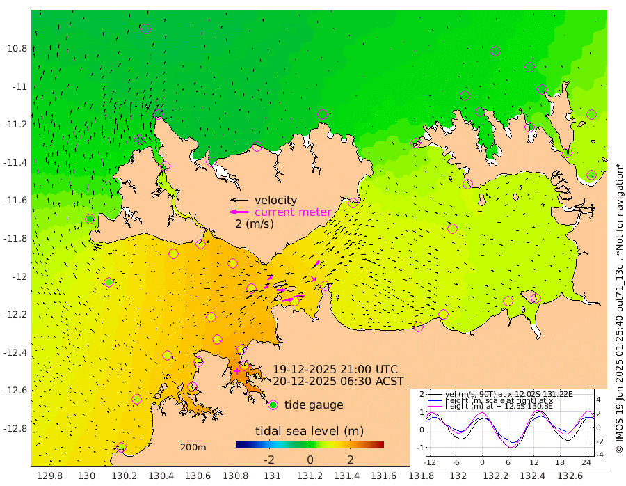 123cm/s 78T +4cm/s rms + 6cm/s 51T. Darwin_C1 52m 103cm/s 91T +4cm/s rms + 7cm/s -161T. Darwin_CW1 22m 54cm/s 72T +4cm/s rms + 8cm/s 61T. Darwin_CW2 34m 78cm/s 42T +3cm/s rms + 9cm/s 98T. Darwin_CW3 22m 91cm/s 89T +5cm/s rms + 7cm/s 88T. Darwin_C3 56m 58cm/s 66T +2cm/s rms + 9cm/s -126T. Darwin_CTbW 22m 4cm/s 19T +1cm/s rms + 1cm/s -47T. DARBGF 30m 6cm/s 7T +4cm/s rms + 3cm/s 80T. NRSDAR 19m -47cm Goodrich Bank 65cm Point Jenny 64cm Native Point 82cm Fish Reef 88cm Tapa Bay 5cm Point Fawcett (Offshore) 101cm Burge Point 81cm Munkunuwa 43cm Beagle A 113cm Parsons Bank 91cm Fenton Patches 111cm Hancox Shoal Area 115cm Nightcliff 131cm Darwin 106cm Charles Point Patches 101cm Glyde Point 85cm Chambers Bay 95cm Point Stuart 93cm Cape Hotham 71cm Christine Reef 101cm West Alligator Head 97cm East Field Island 78cm Two Hills Bay 76cm Camp Point 92cm Medina Inlet South 1cm South Barlow Point -25cm St. Asaph Bay -43cm Cape Van Dieman -31cm Snake Bay -40cm Cache Point -20cm Point Jahleel (Off) 29cm Cape Don 0cm Port Essington -5cm Smith Point - West -1cm NW Peacock Island -15cm North Of Jones Shoal -2cm Peacock Island 40cm Point David 6cm D'urville Point 44cm Copeland Island 35cm One Tree Point