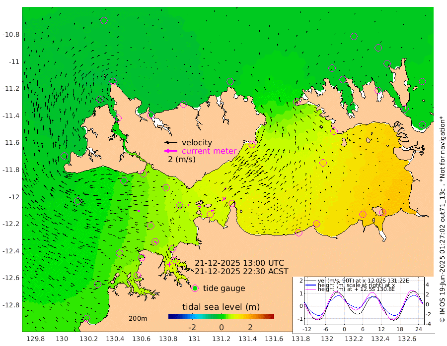 8cm/s 87T +4cm/s rms + 6cm/s 51T. Darwin_C1 52m 43cm/s 87T +4cm/s rms + 7cm/s -161T. Darwin_CW1 22m 10cm/s 83T +4cm/s rms + 8cm/s 61T. Darwin_CW2 34m 31cm/s 34T +3cm/s rms + 9cm/s 98T. Darwin_CW3 22m 50cm/s 93T +5cm/s rms + 7cm/s 88T. Darwin_C3 56m 2cm/s -166T +2cm/s rms + 9cm/s -126T. Darwin_CTbW 22m 39cm/s -81T +1cm/s rms + 1cm/s -47T. DARBGF 30m 48cm/s -52T +4cm/s rms + 3cm/s 80T. NRSDAR 19m -8cm Goodrich Bank 25cm Point Jenny 23cm Native Point 35cm Fish Reef 35cm Tapa Bay 2cm Point Fawcett (Offshore) 46cm Burge Point 12cm Munkunuwa 19cm Beagle A 36cm Parsons Bank 43cm Fenton Patches 52cm Hancox Shoal Area 46cm Nightcliff 66cm Darwin 55cm Charles Point Patches 93cm Glyde Point 147cm Chambers Bay 158cm Point Stuart 101cm Cape Hotham 129cm Christine Reef 178cm West Alligator Head 207cm East Field Island 114cm Two Hills Bay 112cm Camp Point 36cm Medina Inlet South -14cm South Barlow Point -12cm St. Asaph Bay -15cm Cape Van Dieman -14cm Snake Bay -3cm Cache Point 6cm Point Jahleel (Off) 34cm Cape Don 2cm Port Essington -3cm Smith Point - West -3cm NW Peacock Island -2cm North Of Jones Shoal -2cm Peacock Island -1cm Point David -7cm D'urville Point -1cm Copeland Island 5cm One Tree Point