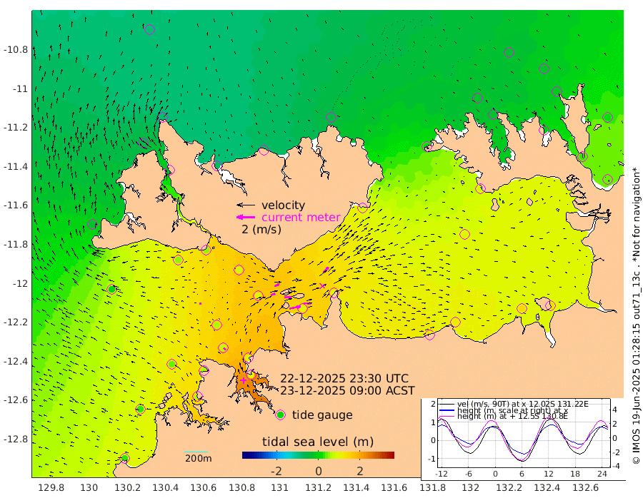 120cm/s 79T +4cm/s rms + 6cm/s 51T. Darwin_C1 52m 80cm/s 93T +4cm/s rms + 7cm/s -161T. Darwin_CW1 22m 49cm/s 69T +4cm/s rms + 8cm/s 61T. Darwin_CW2 34m 85cm/s 42T +3cm/s rms + 9cm/s 98T. Darwin_CW3 22m 78cm/s 89T +5cm/s rms + 7cm/s 88T. Darwin_C3 56m 55cm/s 65T +2cm/s rms + 9cm/s -126T. Darwin_CTbW 22m 21cm/s -78T +1cm/s rms + 1cm/s -47T. DARBGF 30m 30cm/s -47T +4cm/s rms + 3cm/s 80T. NRSDAR 19m -82cm Goodrich Bank 29cm Point Jenny 28cm Native Point 41cm Fish Reef 60cm Tapa Bay -41cm Point Fawcett (Offshore) 65cm Burge Point 48cm Munkunuwa -1cm Beagle A 88cm Parsons Bank 58cm Fenton Patches 98cm Hancox Shoal Area 93cm Nightcliff 106cm Darwin 73cm Charles Point Patches 96cm Glyde Point 114cm Chambers Bay 122cm Point Stuart 98cm Cape Hotham 92cm Christine Reef 135cm West Alligator Head 141cm East Field Island 89cm Two Hills Bay 85cm Camp Point 55cm Medina Inlet South -44cm South Barlow Point -67cm St. Asaph Bay -80cm Cape Van Dieman -68cm Snake Bay -75cm Cache Point -47cm Point Jahleel (Off) 9cm Cape Don -27cm Port Essington -30cm Smith Point - West -24cm NW Peacock Island -44cm North Of Jones Shoal -11cm Peacock Island 30cm Point David -17cm D'urville Point 37cm Copeland Island 19cm One Tree Point