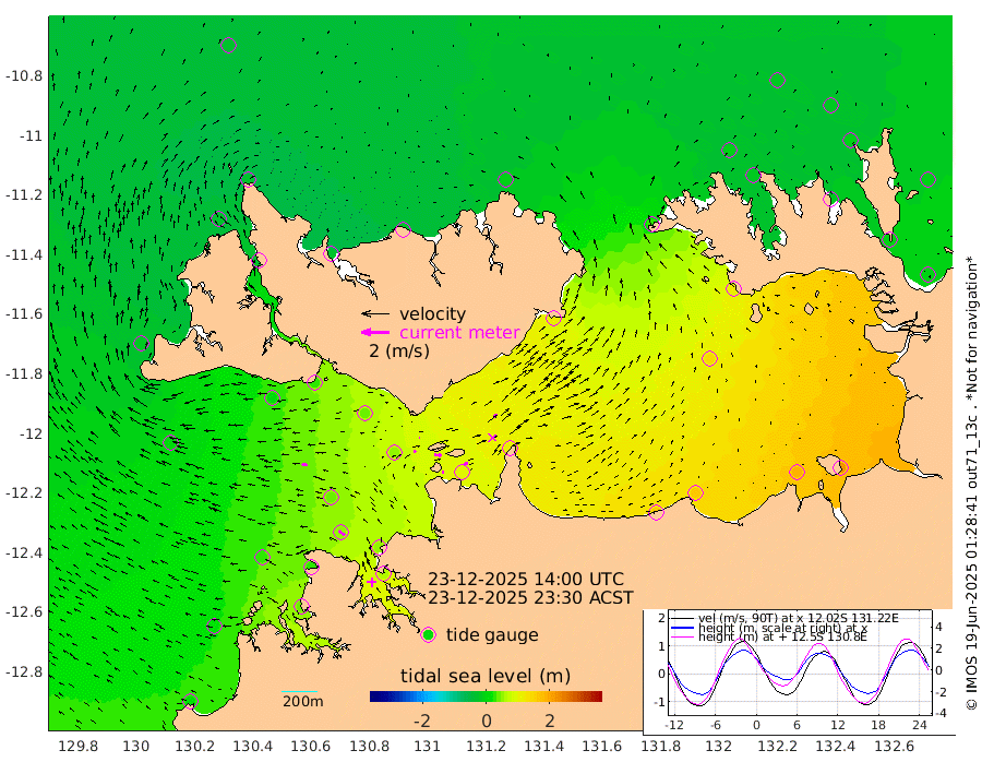 10cm/s 81T +4cm/s rms + 6cm/s 51T. Darwin_C1 52m 27cm/s 87T +4cm/s rms + 7cm/s -161T. Darwin_CW1 22m 17cm/s 74T +4cm/s rms + 8cm/s 61T. Darwin_CW2 34m 31cm/s 39T +3cm/s rms + 9cm/s 98T. Darwin_CW3 22m 50cm/s 93T +5cm/s rms + 7cm/s 88T. Darwin_C3 56m 6cm/s 81T +2cm/s rms + 9cm/s -126T. Darwin_CTbW 22m 42cm/s -81T +1cm/s rms + 1cm/s -47T. DARBGF 30m 54cm/s -52T +4cm/s rms + 3cm/s 80T. NRSDAR 19m -24cm Goodrich Bank 21cm Point Jenny 19cm Native Point 29cm Fish Reef 31cm Tapa Bay -12cm Point Fawcett (Offshore) 44cm Burge Point 6cm Munkunuwa 11cm Beagle A 34cm Parsons Bank 41cm Fenton Patches 52cm Hancox Shoal Area 51cm Nightcliff 65cm Darwin 50cm Charles Point Patches 95cm Glyde Point 158cm Chambers Bay 165cm Point Stuart 102cm Cape Hotham 141cm Christine Reef 187cm West Alligator Head 218cm East Field Island 117cm Two Hills Bay 117cm Camp Point 32cm Medina Inlet South -26cm South Barlow Point -27cm St. Asaph Bay -31cm Cape Van Dieman -30cm Snake Bay -19cm Cache Point -7cm Point Jahleel (Off) 30cm Cape Don -9cm Port Essington -13cm Smith Point - West -13cm NW Peacock Island -12cm North Of Jones Shoal -5cm Peacock Island -9cm Point David -17cm D'urville Point -7cm Copeland Island -1cm One Tree Point