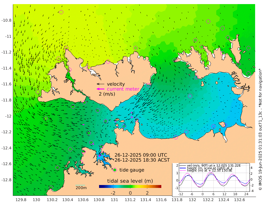 25cm/s -102T +4cm/s rms + 6cm/s 51T. Darwin_C1 52m 7cm/s -99T +4cm/s rms + 7cm/s -161T. Darwin_CW1 22m 8cm/s -105T +4cm/s rms + 8cm/s 61T. Darwin_CW2 34m 45cm/s -140T +3cm/s rms + 9cm/s 98T. Darwin_CW3 22m 35cm/s -89T +5cm/s rms + 7cm/s 88T. Darwin_C3 56m 10cm/s -116T +2cm/s rms + 9cm/s -126T. Darwin_CTbW 22m 48cm/s 97T +1cm/s rms + 1cm/s -47T. DARBGF 30m 54cm/s 128T +4cm/s rms + 3cm/s 80T. NRSDAR 19m 68cm Goodrich Bank -2cm Point Jenny 0cm Native Point -1cm Fish Reef -19cm Tapa Bay 55cm Point Fawcett (Offshore) -24cm Burge Point 8cm Munkunuwa 27cm Beagle A -35cm Parsons Bank -18cm Fenton Patches -55cm Hancox Shoal Area -43cm Nightcliff -55cm Darwin -33cm Charles Point Patches -84cm Glyde Point -148cm Chambers Bay -154cm Point Stuart -93cm Cape Hotham -129cm Christine Reef -173cm West Alligator Head -198cm East Field Island -104cm Two Hills Bay -106cm Camp Point -10cm Medina Inlet South 63cm South Barlow Point 72cm St. Asaph Bay 72cm Cape Van Dieman 69cm Snake Bay 62cm Cache Point 41cm Point Jahleel (Off) -14cm Cape Don 26cm Port Essington 31cm Smith Point - West 24cm NW Peacock Island 40cm North Of Jones Shoal 12cm Peacock Island -14cm Point David 23cm D'urville Point -20cm Copeland Island -8cm One Tree Point