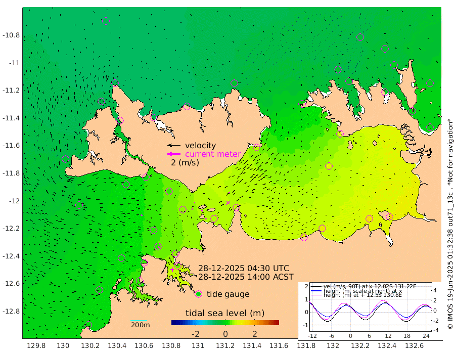 22cm/s 80T +4cm/s rms + 6cm/s 51T. Darwin_C1 52m 10cm/s 86T +4cm/s rms + 7cm/s -161T. Darwin_CW1 22m 11cm/s 72T +4cm/s rms + 8cm/s 61T. Darwin_CW2 34m 24cm/s 39T +3cm/s rms + 9cm/s 98T. Darwin_CW3 22m 26cm/s 91T +5cm/s rms + 7cm/s 88T. Darwin_C3 56m 13cm/s 66T +2cm/s rms + 9cm/s -126T. Darwin_CTbW 22m 25cm/s -82T +1cm/s rms + 1cm/s -47T. DARBGF 30m 32cm/s -52T +4cm/s rms + 3cm/s 80T. NRSDAR 19m -58cm Goodrich Bank 15cm Point Jenny 11cm Native Point 11cm Fish Reef 26cm Tapa Bay -35cm Point Fawcett (Offshore) 24cm Burge Point 0cm Munkunuwa -3cm Beagle A 29cm Parsons Bank 30cm Fenton Patches 52cm Hancox Shoal Area 49cm Nightcliff 40cm Darwin 24cm Charles Point Patches 66cm Glyde Point 119cm Chambers Bay 118cm Point Stuart 76cm Cape Hotham 105cm Christine Reef 134cm West Alligator Head 152cm East Field Island 80cm Two Hills Bay 76cm Camp Point 9cm Medina Inlet South -50cm South Barlow Point -52cm St. Asaph Bay -60cm Cape Van Dieman -63cm Snake Bay -49cm Cache Point -32cm Point Jahleel (Off) 4cm Cape Don -29cm Port Essington -24cm Smith Point - West -23cm NW Peacock Island -36cm North Of Jones Shoal -11cm Peacock Island 1cm Point David -21cm D'urville Point 8cm Copeland Island -5cm One Tree Point
