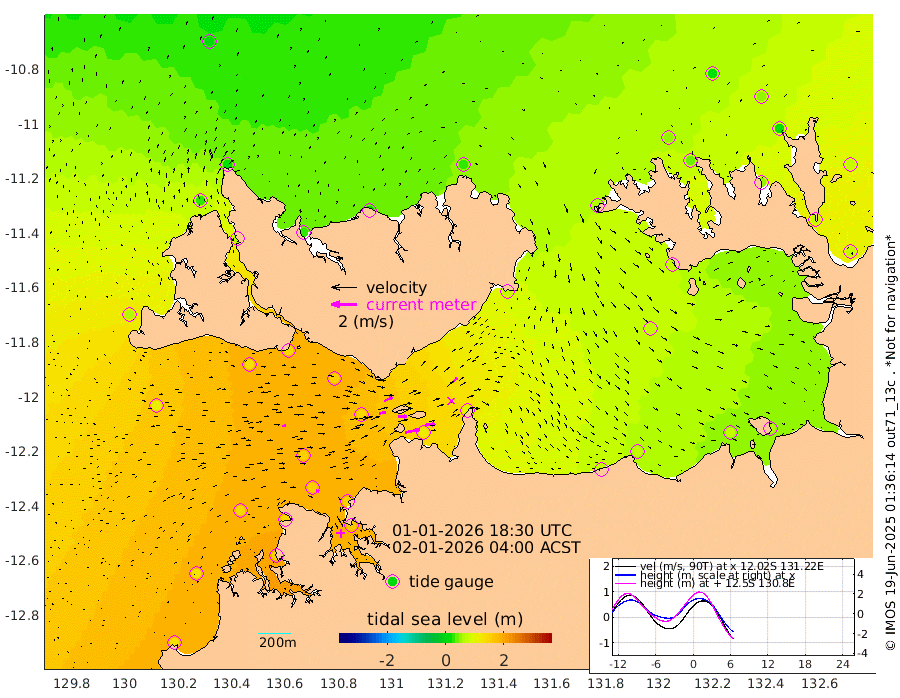 117cm/s 77T +4cm/s rms + 6cm/s 51T. Darwin_C1 52m 82cm/s 86T +4cm/s rms + 7cm/s -161T. Darwin_CW1 22m 51cm/s 75T +4cm/s rms + 8cm/s 61T. Darwin_CW2 34m 53cm/s 46T +3cm/s rms + 9cm/s 98T. Darwin_CW3 22m 71cm/s 89T +5cm/s rms + 7cm/s 88T. Darwin_C3 56m 70cm/s 63T +2cm/s rms + 9cm/s -126T. Darwin_CTbW 22m 24cm/s 86T +1cm/s rms + 1cm/s -47T. DARBGF 30m 24cm/s 110T +4cm/s rms + 3cm/s 80T. NRSDAR 19m 8cm Goodrich Bank 126cm Point Jenny 126cm Native Point 136cm Fish Reef 140cm Tapa Bay 65cm Point Fawcett (Offshore) 152cm Burge Point 129cm Munkunuwa 112cm Beagle A 155cm Parsons Bank 148cm Fenton Patches 145cm Hancox Shoal Area 146cm Nightcliff 163cm Darwin 147cm Charles Point Patches 118cm Glyde Point 71cm Chambers Bay 78cm Point Stuart 100cm Cape Hotham 68cm Christine Reef 77cm West Alligator Head 61cm East Field Island 79cm Two Hills Bay 76cm Camp Point 136cm Medina Inlet South 60cm South Barlow Point 32cm St. Asaph Bay 15cm Cape Van Dieman 23cm Snake Bay 17cm Cache Point 28cm Point Jahleel (Off) 63cm Cape Don 45cm Port Essington 45cm Smith Point - West 47cm NW Peacock Island 22cm North Of Jones Shoal 11cm Peacock Island 77cm Point David 55cm D'urville Point 78cm Copeland Island 68cm One Tree Point