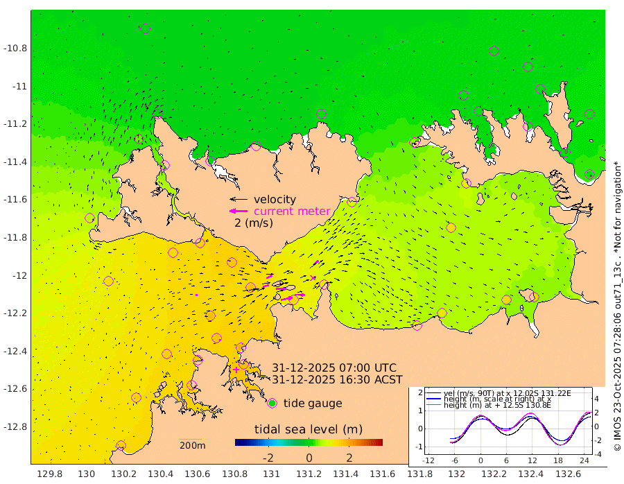 132cm/s 78T +4cm/s rms + 6cm/s 51T. Darwin_C1 52m 115cm/s 92T +4cm/s rms + 7cm/s -161T. Darwin_CW1 22m 69cm/s 73T +4cm/s rms + 8cm/s 61T. Darwin_CW2 34m 73cm/s 44T +3cm/s rms + 9cm/s 98T. Darwin_CW3 22m 115cm/s 90T +5cm/s rms + 7cm/s 88T. Darwin_C3 56m 69cm/s 66T +2cm/s rms + 9cm/s -126T. Darwin_CTbW 22m 18cm/s 72T +1cm/s rms + 1cm/s -47T. DARBGF 30m 12cm/s 95T +4cm/s rms + 3cm/s 80T. NRSDAR 19m -3cm Goodrich Bank 153cm Point Jenny 149cm Native Point 151cm Fish Reef 165cm Tapa Bay 75cm Point Fawcett (Offshore) 176cm Burge Point 142cm Munkunuwa 132cm Beagle A 159cm Parsons Bank 173cm Fenton Patches 170cm Hancox Shoal Area 185cm Nightcliff 177cm Darwin 163cm Charles Point Patches 143cm Glyde Point 137cm Chambers Bay 127cm Point Stuart 127cm Cape Hotham 135cm Christine Reef 139cm West Alligator Head 136cm East Field Island 108cm Two Hills Bay 110cm Camp Point 150cm Medina Inlet South 48cm South Barlow Point 36cm St. Asaph Bay -2cm Cape Van Dieman -5cm Snake Bay 8cm Cache Point 20cm Point Jahleel (Off) 56cm Cape Don 16cm Port Essington 21cm Smith Point - West 14cm NW Peacock Island 6cm North Of Jones Shoal 2cm Peacock Island 18cm Point David 17cm D'urville Point 22cm Copeland Island 19cm One Tree Point
