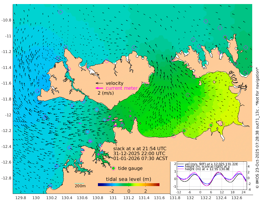 95cm/s -102T +4cm/s rms + 6cm/s 51T. Darwin_C1 52m 46cm/s -88T +4cm/s rms + 7cm/s -161T. Darwin_CW1 22m 64cm/s -105T +4cm/s rms + 8cm/s 61T. Darwin_CW2 34m 20cm/s -118T +3cm/s rms + 9cm/s 98T. Darwin_CW3 22m 81cm/s -92T +5cm/s rms + 7cm/s 88T. Darwin_C3 56m 66cm/s -116T +2cm/s rms + 9cm/s -126T. Darwin_CTbW 22m 70cm/s -90T +1cm/s rms + 1cm/s -47T. DARBGF 30m 68cm/s -58T +4cm/s rms + 3cm/s 80T. NRSDAR 19m -117cm Goodrich Bank -174cm Point Jenny -173cm Native Point -173cm Fish Reef -169cm Tapa Bay -174cm Point Fawcett (Offshore) -163cm Burge Point -163cm Munkunuwa -176cm Beagle A -151cm Parsons Bank -162cm Fenton Patches -136cm Hancox Shoal Area -152cm Nightcliff -149cm Darwin -166cm Charles Point Patches -80cm Glyde Point -10cm Chambers Bay 13cm Point Stuart -52cm Cape Hotham -17cm Christine Reef 26cm West Alligator Head 61cm East Field Island -32cm Two Hills Bay -24cm Camp Point -167cm Medina Inlet South -158cm South Barlow Point -150cm St. Asaph Bay -123cm Cape Van Dieman -123cm Snake Bay -125cm Cache Point -110cm Point Jahleel (Off) -95cm Cape Don -106cm Port Essington -113cm Smith Point - West -104cm NW Peacock Island -108cm North Of Jones Shoal -37cm Peacock Island -76cm Point David -107cm D'urville Point -70cm Copeland Island -83cm One Tree Point