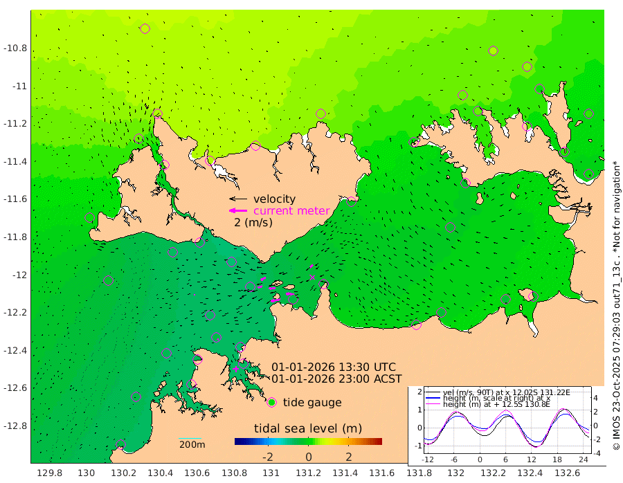 108cm/s -102T +4cm/s rms + 6cm/s 51T. Darwin_C1 52m 91cm/s -89T +4cm/s rms + 7cm/s -161T. Darwin_CW1 22m 52cm/s -108T +4cm/s rms + 8cm/s 61T. Darwin_CW2 34m 46cm/s -132T +3cm/s rms + 9cm/s 98T. Darwin_CW3 22m 70cm/s -91T +5cm/s rms + 7cm/s 88T. Darwin_C3 56m 61cm/s -115T +2cm/s rms + 9cm/s -126T. Darwin_CTbW 22m 16cm/s -94T +1cm/s rms + 1cm/s -47T. DARBGF 30m 16cm/s -76T +4cm/s rms + 3cm/s 80T. NRSDAR 19m 71cm Goodrich Bank -54cm Point Jenny -52cm Native Point -58cm Fish Reef -67cm Tapa Bay 14cm Point Fawcett (Offshore) -75cm Burge Point -76cm Munkunuwa -31cm Beagle A -81cm Parsons Bank -70cm Fenton Patches -77cm Hancox Shoal Area -83cm Nightcliff -78cm Darwin -54cm Charles Point Patches -50cm Glyde Point -33cm Chambers Bay -36cm Point Stuart -40cm Cape Hotham -30cm Christine Reef -42cm West Alligator Head -30cm East Field Island -23cm Two Hills Bay -18cm Camp Point -60cm Medina Inlet South 23cm South Barlow Point 41cm St. Asaph Bay 66cm Cape Van Dieman 66cm Snake Bay 66cm Cache Point 49cm Point Jahleel (Off) 16cm Cape Don 45cm Port Essington 42cm Smith Point - West 45cm NW Peacock Island 61cm North Of Jones Shoal 19cm Peacock Island 23cm Point David 39cm D'urville Point 18cm Copeland Island 31cm One Tree Point