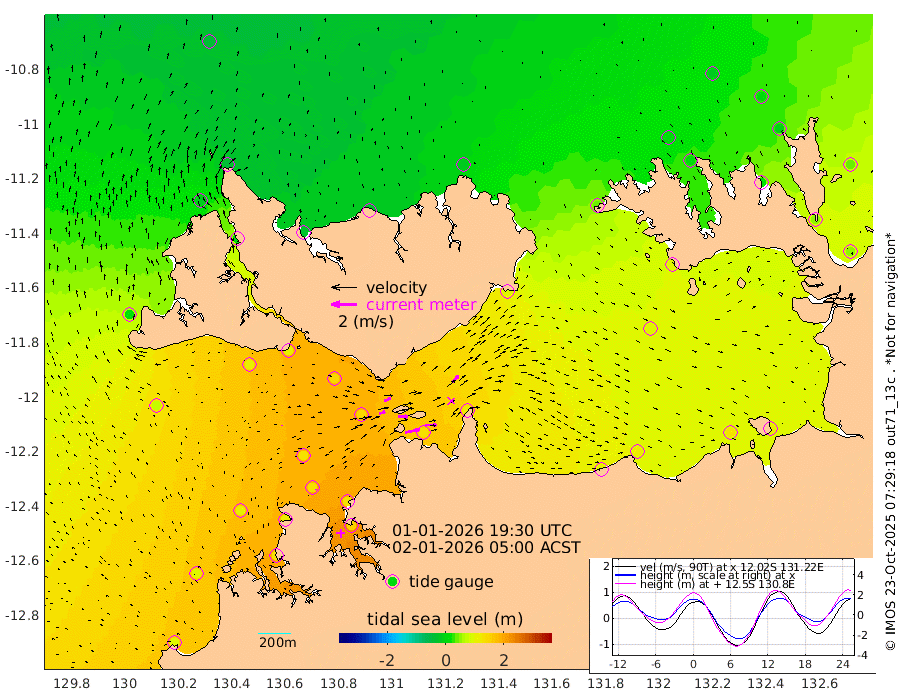 116cm/s 78T +4cm/s rms + 6cm/s 51T. Darwin_C1 52m 91cm/s 90T +4cm/s rms + 7cm/s -161T. Darwin_CW1 22m 49cm/s 73T +4cm/s rms + 8cm/s 61T. Darwin_CW2 34m 71cm/s 42T +3cm/s rms + 9cm/s 98T. Darwin_CW3 22m 79cm/s 90T +5cm/s rms + 7cm/s 88T. Darwin_C3 56m 58cm/s 64T +2cm/s rms + 9cm/s -126T. Darwin_CTbW 22m 4cm/s 18T +1cm/s rms + 1cm/s -47T. DARBGF 30m 5cm/s 28T +4cm/s rms + 3cm/s 80T. NRSDAR 19m -41cm Goodrich Bank 95cm Point Jenny 95cm Native Point 107cm Fish Reef 116cm Tapa Bay 13cm Point Fawcett (Offshore) 134cm Burge Point 102cm Munkunuwa 76cm Beagle A 138cm Parsons Bank 129cm Fenton Patches 136cm Hancox Shoal Area 135cm Nightcliff 152cm Darwin 124cm Charles Point Patches 125cm Glyde Point 104cm Chambers Bay 118cm Point Stuart 113cm Cape Hotham 96cm Christine Reef 124cm West Alligator Head 122cm East Field Island 95cm Two Hills Bay 95cm Camp Point 109cm Medina Inlet South 9cm South Barlow Point -20cm St. Asaph Bay -36cm Cape Van Dieman -28cm Snake Bay -32cm Cache Point -12cm Point Jahleel (Off) 39cm Cape Don 6cm Port Essington 4cm Smith Point - West 8cm NW Peacock Island -21cm North Of Jones Shoal -3cm Peacock Island 51cm Point David 16cm D'urville Point 55cm Copeland Island 39cm One Tree Point