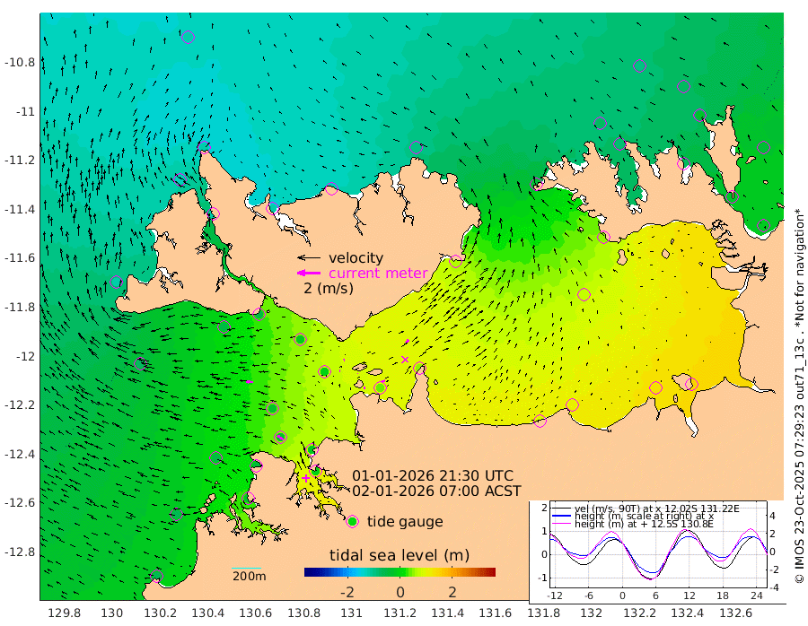 12cm/s 87T +4cm/s rms + 6cm/s 51T. Darwin_C1 52m 33cm/s 91T +4cm/s rms + 7cm/s -161T. Darwin_CW1 22m 7cm/s -73T +4cm/s rms + 8cm/s 61T. Darwin_CW2 34m 36cm/s 38T +3cm/s rms + 9cm/s 98T. Darwin_CW3 22m 3cm/s 115T +5cm/s rms + 7cm/s 88T. Darwin_C3 56m 6cm/s -113T +2cm/s rms + 9cm/s -126T. Darwin_CTbW 22m 58cm/s -86T +1cm/s rms + 1cm/s -47T. DARBGF 30m 65cm/s -56T +4cm/s rms + 3cm/s 80T. NRSDAR 19m -118cm Goodrich Bank -61cm Point Jenny -61cm Native Point -53cm Fish Reef -42cm Tapa Bay -121cm Point Fawcett (Offshore) -24cm Burge Point -50cm Munkunuwa -77cm Beagle A -13cm Parsons Bank -26cm Fenton Patches 0cm Hancox Shoal Area -13cm Nightcliff -1cm Darwin -33cm Charles Point Patches 36cm Glyde Point 83cm Chambers Bay 107cm Point Stuart 49cm Cape Hotham 71cm Christine Reef 125cm West Alligator Head 153cm East Field Island 53cm Two Hills Bay 59cm Camp Point -46cm Medina Inlet South -115cm South Barlow Point -127cm St. Asaph Bay -121cm Cape Van Dieman -116cm Snake Bay -117cm Cache Point -91cm Point Jahleel (Off) -43cm Cape Don -78cm Port Essington -84cm Smith Point - West -75cm NW Peacock Island -97cm North Of Jones Shoal -31cm Peacock Island -27cm Point David -72cm D'urville Point -20cm Copeland Island -40cm One Tree Point