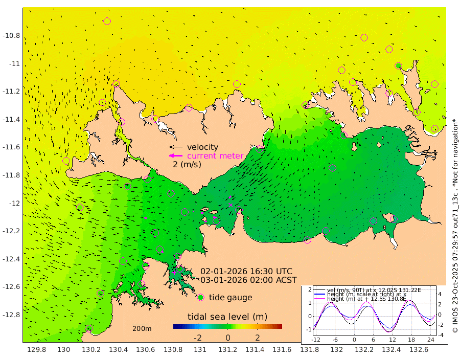 37cm/s -101T +4cm/s rms + 6cm/s 51T. Darwin_C1 52m 58cm/s -90T +4cm/s rms + 7cm/s -161T. Darwin_CW1 22m 12cm/s -112T +4cm/s rms + 8cm/s 61T. Darwin_CW2 34m 50cm/s -138T +3cm/s rms + 9cm/s 98T. Darwin_CW3 22m 36cm/s -91T +5cm/s rms + 7cm/s 88T. Darwin_C3 56m 1cm/s -54T +2cm/s rms + 9cm/s -126T. Darwin_CTbW 22m 36cm/s 98T +1cm/s rms + 1cm/s -47T. DARBGF 30m 37cm/s 131T +4cm/s rms + 3cm/s 80T. NRSDAR 19m 99cm Goodrich Bank 28cm Point Jenny 30cm Native Point 26cm Fish Reef 15cm Tapa Bay 82cm Point Fawcett (Offshore) 3cm Burge Point 11cm Munkunuwa 44cm Beagle A 3cm Parsons Bank 6cm Fenton Patches -10cm Hancox Shoal Area -11cm Nightcliff -5cm Darwin 21cm Charles Point Patches -23cm Glyde Point -65cm Chambers Bay -71cm Point Stuart -31cm Cape Hotham -58cm Christine Reef -90cm West Alligator Head -107cm East Field Island -30cm Two Hills Bay -31cm Camp Point 20cm Medina Inlet South 87cm South Barlow Point 91cm St. Asaph Bay 102cm Cape Van Dieman 106cm Snake Bay 100cm Cache Point 80cm Point Jahleel (Off) 50cm Cape Don 87cm Port Essington 86cm Smith Point - West 87cm NW Peacock Island 93cm North Of Jones Shoal 33cm Peacock Island 74cm Point David 88cm D'urville Point 68cm Copeland Island 77cm One Tree Point