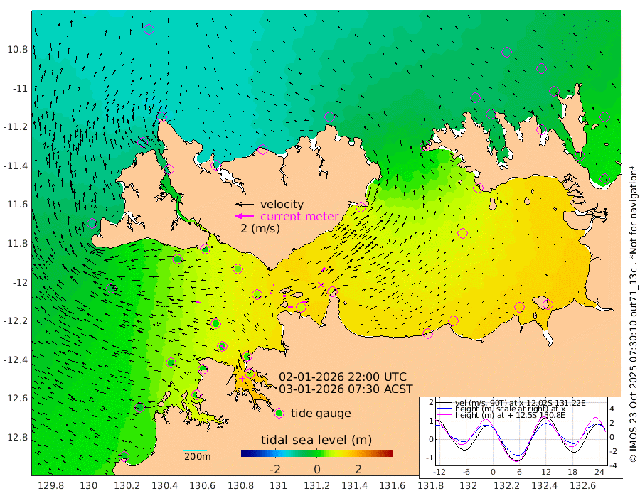 51cm/s 81T +4cm/s rms + 6cm/s 51T. Darwin_C1 52m 58cm/s 91T +4cm/s rms + 7cm/s -161T. Darwin_CW1 22m 16cm/s 55T +4cm/s rms + 8cm/s 61T. Darwin_CW2 34m 55cm/s 41T +3cm/s rms + 9cm/s 98T. Darwin_CW3 22m 32cm/s 91T +5cm/s rms + 7cm/s 88T. Darwin_C3 56m 16cm/s 63T +2cm/s rms + 9cm/s -126T. Darwin_CTbW 22m 52cm/s -85T +1cm/s rms + 1cm/s -47T. DARBGF 30m 62cm/s -55T +4cm/s rms + 3cm/s 80T. NRSDAR 19m -116cm Goodrich Bank -22cm Point Jenny -23cm Native Point -11cm Fish Reef 2cm Tapa Bay -101cm Point Fawcett (Offshore) 22cm Burge Point -10cm Munkunuwa -44cm Beagle A 36cm Parsons Bank 18cm Fenton Patches 47cm Hancox Shoal Area 33cm Nightcliff 51cm Darwin 14cm Charles Point Patches 73cm Glyde Point 113cm Chambers Bay 136cm Point Stuart 83cm Cape Hotham 98cm Christine Reef 154cm West Alligator Head 178cm East Field Island 81cm Two Hills Bay 83cm Camp Point -4cm Medina Inlet South -97cm South Barlow Point -117cm St. Asaph Bay -117cm Cape Van Dieman -112cm Snake Bay -112cm Cache Point -82cm Point Jahleel (Off) -23cm Cape Don -64cm Port Essington -69cm Smith Point - West -60cm NW Peacock Island -89cm North Of Jones Shoal -27cm Peacock Island -6cm Point David -55cm D'urville Point 2cm Copeland Island -20cm One Tree Point