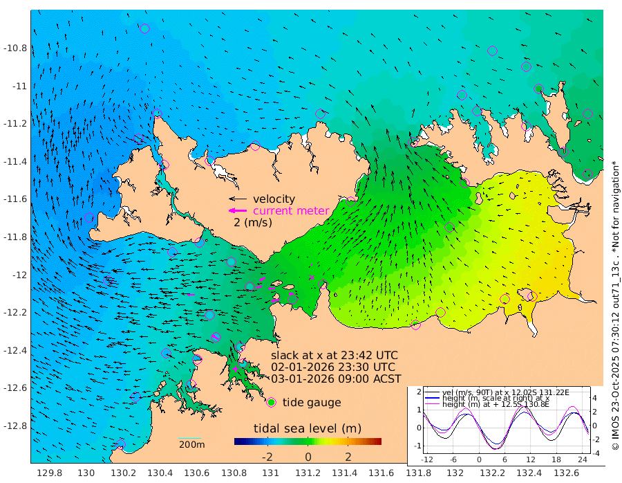 98cm/s -103T +4cm/s rms + 6cm/s 51T. Darwin_C1 52m 47cm/s -86T +4cm/s rms + 7cm/s -161T. Darwin_CW1 22m 63cm/s -106T +4cm/s rms + 8cm/s 61T. Darwin_CW2 34m 16cm/s -99T +3cm/s rms + 9cm/s 98T. Darwin_CW3 22m 73cm/s -92T +5cm/s rms + 7cm/s 88T. Darwin_C3 56m 68cm/s -116T +2cm/s rms + 9cm/s -126T. Darwin_CTbW 22m 83cm/s -89T +1cm/s rms + 1cm/s -47T. DARBGF 30m 83cm/s -57T +4cm/s rms + 3cm/s 80T. NRSDAR 19m -142cm Goodrich Bank -179cm Point Jenny -179cm Native Point -176cm Fish Reef -169cm Tapa Bay -197cm Point Fawcett (Offshore) -160cm Burge Point -169cm Munkunuwa -185cm Beagle A -140cm Parsons Bank -157cm Fenton Patches -121cm Hancox Shoal Area -144cm Nightcliff -138cm Darwin -164cm Charles Point Patches -58cm Glyde Point 32cm Chambers Bay 57cm Point Stuart -25cm Cape Hotham 19cm Christine Reef 75cm West Alligator Head 118cm East Field Island -2cm Two Hills Bay 1cm Camp Point -171cm Medina Inlet South -181cm South Barlow Point -177cm St. Asaph Bay -149cm Cape Van Dieman -148cm Snake Bay -146cm Cache Point -124cm Point Jahleel (Off) -95cm Cape Don -116cm Port Essington -120cm Smith Point - West -109cm NW Peacock Island -124cm North Of Jones Shoal -41cm Peacock Island -69cm Point David -111cm D'urville Point -61cm Copeland Island -81cm One Tree Point
