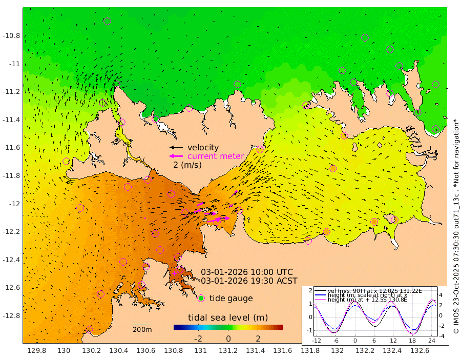 207cm/s 79T +4cm/s rms + 6cm/s 51T. Darwin_C1 52m 181cm/s 92T +4cm/s rms + 7cm/s -161T. Darwin_CW1 22m 116cm/s 71T +4cm/s rms + 8cm/s 61T. Darwin_CW2 34m 119cm/s 46T +3cm/s rms + 9cm/s 98T. Darwin_CW3 22m 183cm/s 90T +5cm/s rms + 7cm/s 88T. Darwin_C3 56m 106cm/s 66T +2cm/s rms + 9cm/s -126T. Darwin_CTbW 22m 18cm/s 54T +1cm/s rms + 1cm/s -47T. DARBGF 30m 9cm/s 8T +4cm/s rms + 3cm/s 80T. NRSDAR 19m -1cm Goodrich Bank 214cm Point Jenny 211cm Native Point 222cm Fish Reef 238cm Tapa Bay 105cm Point Fawcett (Offshore) 264cm Burge Point 219cm Munkunuwa 185cm Beagle A 242cm Parsons Bank 251cm Fenton Patches 247cm Hancox Shoal Area 266cm Nightcliff 274cm Darwin 246cm Charles Point Patches 214cm Glyde Point 195cm Chambers Bay 188cm Point Stuart 189cm Cape Hotham 187cm Christine Reef 206cm West Alligator Head 202cm East Field Island 160cm Two Hills Bay 164cm Camp Point 230cm Medina Inlet South 77cm South Barlow Point 52cm St. Asaph Bay 0cm Cape Van Dieman 3cm Snake Bay 9cm Cache Point 29cm Point Jahleel (Off) 81cm Cape Don 23cm Port Essington 24cm Smith Point - West 16cm NW Peacock Island 6cm North Of Jones Shoal 2cm Peacock Island 23cm Point David 19cm D'urville Point 24cm Copeland Island 26cm One Tree Point