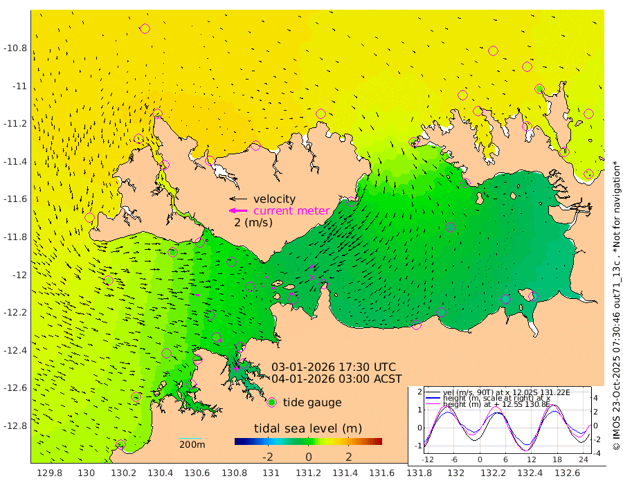 19cm/s -102T +4cm/s rms + 6cm/s 51T. Darwin_C1 52m 40cm/s -88T +4cm/s rms + 7cm/s -161T. Darwin_CW1 22m 10cm/s -115T +4cm/s rms + 8cm/s 61T. Darwin_CW2 34m 49cm/s -140T +3cm/s rms + 9cm/s 98T. Darwin_CW3 22m 37cm/s -91T +5cm/s rms + 7cm/s 88T. Darwin_C3 56m 12cm/s 55T +2cm/s rms + 9cm/s -126T. Darwin_CTbW 22m 44cm/s 97T +1cm/s rms + 1cm/s -47T. DARBGF 30m 45cm/s 130T +4cm/s rms + 3cm/s 80T. NRSDAR 19m 103cm Goodrich Bank 39cm Point Jenny 41cm Native Point 36cm Fish Reef 25cm Tapa Bay 92cm Point Fawcett (Offshore) 12cm Burge Point 23cm Munkunuwa 53cm Beagle A 11cm Parsons Bank 13cm Fenton Patches -3cm Hancox Shoal Area -2cm Nightcliff 3cm Darwin 31cm Charles Point Patches -25cm Glyde Point -79cm Chambers Bay -87cm Point Stuart -36cm Cape Hotham -69cm Christine Reef -108cm West Alligator Head -131cm East Field Island -40cm Two Hills Bay -38cm Camp Point 31cm Medina Inlet South 96cm South Barlow Point 99cm St. Asaph Bay 107cm Cape Van Dieman 110cm Snake Bay 103cm Cache Point 82cm Point Jahleel (Off) 52cm Cape Don 90cm Port Essington 89cm Smith Point - West 90cm NW Peacock Island 97cm North Of Jones Shoal 34cm Peacock Island 77cm Point David 91cm D'urville Point 71cm Copeland Island 80cm One Tree Point