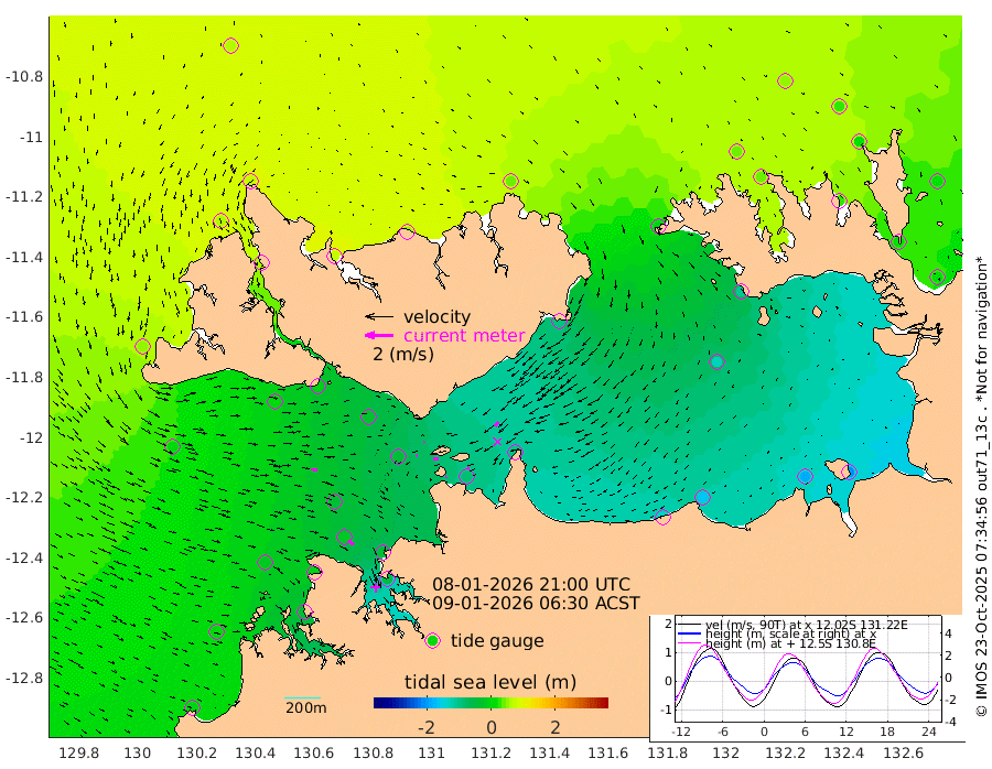 7cm/s -109T +4cm/s rms + 6cm/s 51T. Darwin_C1 52m 4cm/s 45T +4cm/s rms + 7cm/s -161T. Darwin_CW1 22m 9cm/s -107T +4cm/s rms + 8cm/s 61T. Darwin_CW2 34m 40cm/s -145T +3cm/s rms + 9cm/s 98T. Darwin_CW3 22m 36cm/s -88T +5cm/s rms + 7cm/s 88T. Darwin_C3 56m 7cm/s 56T +2cm/s rms + 9cm/s -126T. Darwin_CTbW 22m 42cm/s 98T +1cm/s rms + 1cm/s -47T. DARBGF 30m 46cm/s 128T +4cm/s rms + 3cm/s 80T. NRSDAR 19m 64cm Goodrich Bank -5cm Point Jenny 0cm Native Point -17cm Fish Reef -11cm Tapa Bay 47cm Point Fawcett (Offshore) -35cm Burge Point 2cm Munkunuwa 1cm Beagle A -31cm Parsons Bank -37cm Fenton Patches -42cm Hancox Shoal Area -38cm Nightcliff -45cm Darwin -18cm Charles Point Patches -82cm Glyde Point -144cm Chambers Bay -160cm Point Stuart -97cm Cape Hotham -130cm Christine Reef -183cm West Alligator Head -212cm East Field Island -109cm Two Hills Bay -94cm Camp Point -10cm Medina Inlet South 58cm South Barlow Point 64cm St. Asaph Bay 69cm Cape Van Dieman 70cm Snake Bay 56cm Cache Point 36cm Point Jahleel (Off) -6cm Cape Don 36cm Port Essington 34cm Smith Point - West 34cm NW Peacock Island 47cm North Of Jones Shoal 16cm Peacock Island 20cm Point David 34cm D'urville Point 14cm Copeland Island 20cm One Tree Point