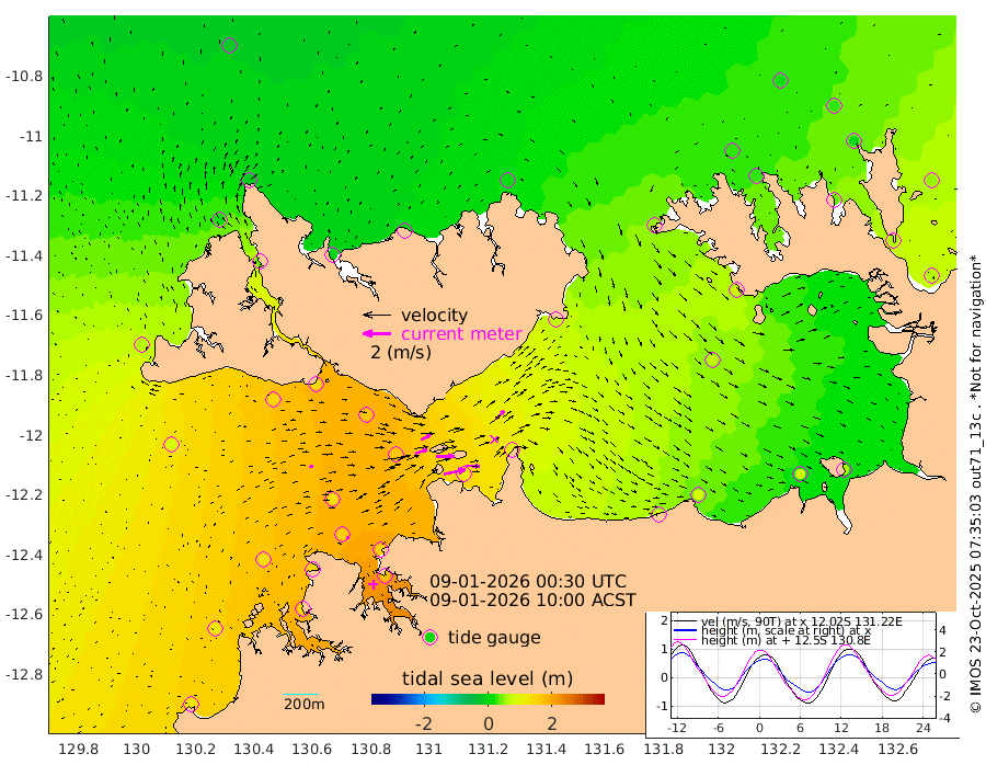 156cm/s 78T +4cm/s rms + 6cm/s 51T. Darwin_C1 52m 101cm/s 93T +4cm/s rms + 7cm/s -161T. Darwin_CW1 22m 85cm/s 73T +4cm/s rms + 8cm/s 61T. Darwin_CW2 34m 85cm/s 45T +3cm/s rms + 9cm/s 98T. Darwin_CW3 22m 131cm/s 89T +5cm/s rms + 7cm/s 88T. Darwin_C3 56m 74cm/s 66T +2cm/s rms + 9cm/s -126T. Darwin_CTbW 22m 27cm/s 82T +1cm/s rms + 1cm/s -47T. DARBGF 30m 20cm/s 101T +4cm/s rms + 3cm/s 80T. NRSDAR 19m -18cm Goodrich Bank 118cm Point Jenny 115cm Native Point 134cm Fish Reef 143cm Tapa Bay 60cm Point Fawcett (Offshore) 145cm Burge Point 142cm Munkunuwa 84cm Beagle A 164cm Parsons Bank 129cm Fenton Patches 158cm Hancox Shoal Area 157cm Nightcliff 176cm Darwin 156cm Charles Point Patches 118cm Glyde Point 90cm Chambers Bay 85cm Point Stuart 105cm Cape Hotham 69cm Christine Reef 88cm West Alligator Head 66cm East Field Island 84cm Two Hills Bay 70cm Camp Point 145cm Medina Inlet South 45cm South Barlow Point 19cm St. Asaph Bay -12cm Cape Van Dieman -3cm Snake Bay -8cm Cache Point 9cm Point Jahleel (Off) 53cm Cape Don 29cm Port Essington 28cm Smith Point - West 27cm NW Peacock Island 14cm North Of Jones Shoal 8cm Peacock Island 59cm Point David 35cm D'urville Point 63cm Copeland Island 56cm One Tree Point