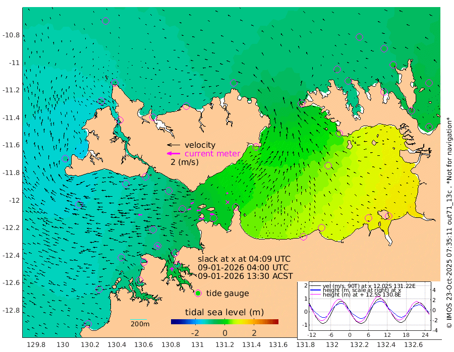 86cm/s -103T +4cm/s rms + 6cm/s 51T. Darwin_C1 52m 63cm/s -88T +4cm/s rms + 7cm/s -161T. Darwin_CW1 22m 57cm/s -110T +4cm/s rms + 8cm/s 61T. Darwin_CW2 34m 25cm/s -108T +3cm/s rms + 9cm/s 98T. Darwin_CW3 22m 61cm/s -93T +5cm/s rms + 7cm/s 88T. Darwin_C3 56m 49cm/s -117T +2cm/s rms + 9cm/s -126T. Darwin_CTbW 22m 57cm/s -89T +1cm/s rms + 1cm/s -47T. DARBGF 30m 54cm/s -58T +4cm/s rms + 3cm/s 80T. NRSDAR 19m -86cm Goodrich Bank -103cm Point Jenny -109cm Native Point -100cm Fish Reef -106cm Tapa Bay -111cm Point Fawcett (Offshore) -96cm Burge Point -117cm Munkunuwa -107cm Beagle A -91cm Parsons Bank -95cm Fenton Patches -72cm Hancox Shoal Area -88cm Nightcliff -91cm Darwin -106cm Charles Point Patches -14cm Glyde Point 77cm Chambers Bay 99cm Point Stuart 22cm Cape Hotham 66cm Christine Reef 118cm West Alligator Head 155cm East Field Island 48cm Two Hills Bay 34cm Camp Point -111cm Medina Inlet South -119cm South Barlow Point -108cm St. Asaph Bay -91cm Cape Van Dieman -97cm Snake Bay -78cm Cache Point -65cm Point Jahleel (Off) -38cm Cape Don -61cm Port Essington -62cm Smith Point - West -56cm NW Peacock Island -62cm North Of Jones Shoal -21cm Peacock Island -34cm Point David -58cm D'urville Point -27cm Copeland Island -37cm One Tree Point