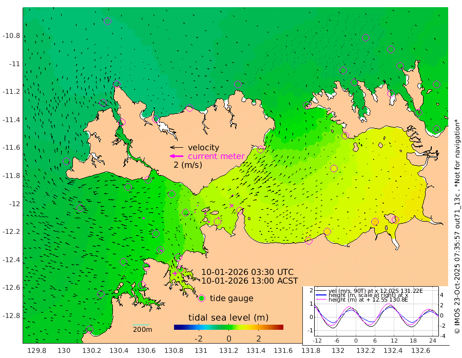 23cm/s 83T +4cm/s rms + 6cm/s 51T. Darwin_C1 52m 12cm/s 85T +4cm/s rms + 7cm/s -161T. Darwin_CW1 22m 10cm/s 73T +4cm/s rms + 8cm/s 61T. Darwin_CW2 34m 22cm/s 41T +3cm/s rms + 9cm/s 98T. Darwin_CW3 22m 29cm/s 91T +5cm/s rms + 7cm/s 88T. Darwin_C3 56m 11cm/s 69T +2cm/s rms + 9cm/s -126T. Darwin_CTbW 22m 29cm/s -83T +1cm/s rms + 1cm/s -47T. DARBGF 30m 39cm/s -53T +4cm/s rms + 3cm/s 80T. NRSDAR 19m -68cm Goodrich Bank -6cm Point Jenny -13cm Native Point 5cm Fish Reef 3cm Tapa Bay -41cm Point Fawcett (Offshore) 10cm Burge Point -8cm Munkunuwa -26cm Beagle A 20cm Parsons Bank 4cm Fenton Patches 33cm Hancox Shoal Area 23cm Nightcliff 29cm Darwin 8cm Charles Point Patches 59cm Glyde Point 116cm Chambers Bay 131cm Point Stuart 80cm Cape Hotham 96cm Christine Reef 150cm West Alligator Head 167cm East Field Island 90cm Two Hills Bay 69cm Camp Point 0cm Medina Inlet South -60cm South Barlow Point -63cm St. Asaph Bay -69cm Cape Van Dieman -70cm Snake Bay -56cm Cache Point -38cm Point Jahleel (Off) 4cm Cape Don -30cm Port Essington -30cm Smith Point - West -28cm NW Peacock Island -36cm North Of Jones Shoal -11cm Peacock Island 0cm Point David -26cm D'urville Point 7cm Copeland Island -2cm One Tree Point