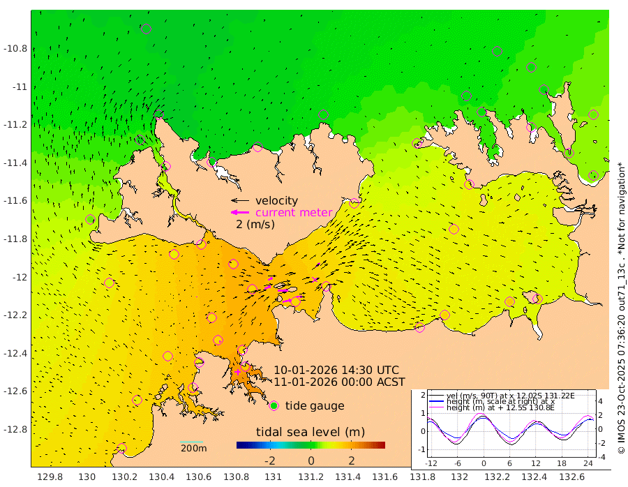 102cm/s 79T +4cm/s rms + 6cm/s 51T. Darwin_C1 52m 64cm/s 92T +4cm/s rms + 7cm/s -161T. Darwin_CW1 22m 70cm/s 72T +4cm/s rms + 8cm/s 61T. Darwin_CW2 34m 60cm/s 47T +3cm/s rms + 9cm/s 98T. Darwin_CW3 22m 115cm/s 90T +5cm/s rms + 7cm/s 88T. Darwin_C3 56m 53cm/s 65T +2cm/s rms + 9cm/s -126T. Darwin_CTbW 22m 7cm/s -17T +1cm/s rms + 1cm/s -47T. DARBGF 30m 17cm/s -34T +4cm/s rms + 3cm/s 80T. NRSDAR 19m -14cm Goodrich Bank 105cm Point Jenny 103cm Native Point 124cm Fish Reef 122cm Tapa Bay 41cm Point Fawcett (Offshore) 140cm Burge Point 110cm Munkunuwa 89cm Beagle A 142cm Parsons Bank 135cm Fenton Patches 139cm Hancox Shoal Area 142cm Nightcliff 165cm Darwin 139cm Charles Point Patches 140cm Glyde Point 141cm Chambers Bay 146cm Point Stuart 129cm Cape Hotham 124cm Christine Reef 160cm West Alligator Head 161cm East Field Island 123cm Two Hills Bay 111cm Camp Point 127cm Medina Inlet South 31cm South Barlow Point 7cm St. Asaph Bay -14cm Cape Van Dieman -5cm Snake Bay -6cm Cache Point 12cm Point Jahleel (Off) 59cm Cape Don 22cm Port Essington 21cm Smith Point - West 19cm NW Peacock Island 4cm North Of Jones Shoal 3cm Peacock Island 36cm Point David 24cm D'urville Point 38cm Copeland Island 38cm One Tree Point