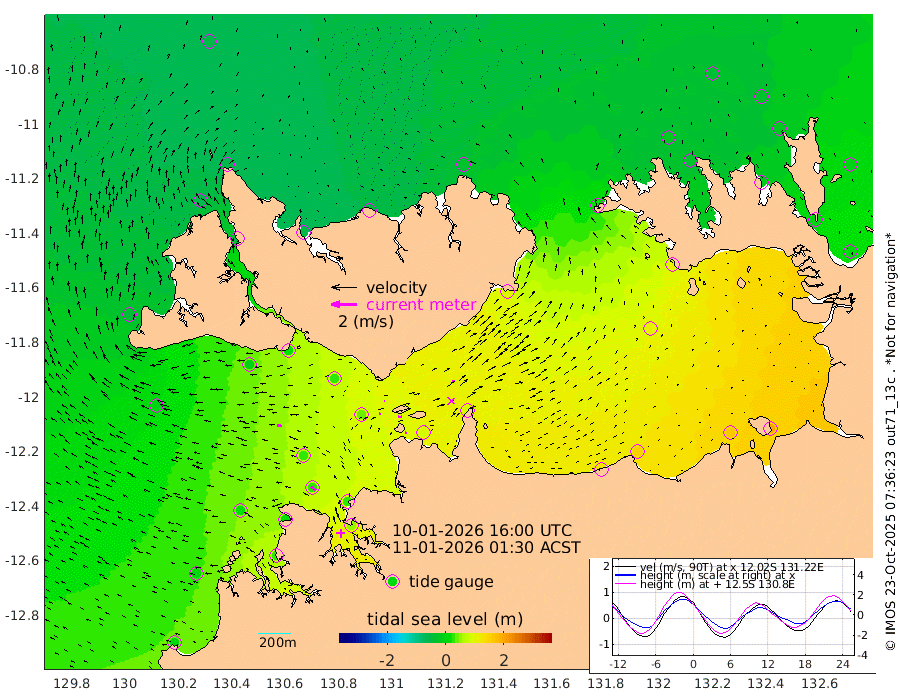 7cm/s 80T +4cm/s rms + 6cm/s 51T. Darwin_C1 52m 2cm/s 80T +4cm/s rms + 7cm/s -161T. Darwin_CW1 22m 9cm/s 74T +4cm/s rms + 8cm/s 61T. Darwin_CW2 34m 20cm/s 40T +3cm/s rms + 9cm/s 98T. Darwin_CW3 22m 32cm/s 94T +5cm/s rms + 7cm/s 88T. Darwin_C3 56m 3cm/s 68T +2cm/s rms + 9cm/s -126T. Darwin_CTbW 22m 38cm/s -82T +1cm/s rms + 1cm/s -47T. DARBGF 30m 46cm/s -52T +4cm/s rms + 3cm/s 80T. NRSDAR 19m -53cm Goodrich Bank 4cm Point Jenny 2cm Native Point 17cm Fish Reef 12cm Tapa Bay -39cm Point Fawcett (Offshore) 31cm Burge Point -1cm Munkunuwa -6cm Beagle A 31cm Parsons Bank 28cm Fenton Patches 37cm Hancox Shoal Area 28cm Nightcliff 48cm Darwin 25cm Charles Point Patches 80cm Glyde Point 127cm Chambers Bay 149cm Point Stuart 89cm Cape Hotham 112cm Christine Reef 168cm West Alligator Head 192cm East Field Island 102cm Two Hills Bay 92cm Camp Point 15cm Medina Inlet South -47cm South Barlow Point -57cm St. Asaph Bay -56cm Cape Van Dieman -53cm Snake Bay -46cm Cache Point -29cm Point Jahleel (Off) 15cm Cape Don -21cm Port Essington -26cm Smith Point - West -23cm NW Peacock Island -38cm North Of Jones Shoal -12cm Peacock Island -1cm Point David -22cm D'urville Point 2cm Copeland Island -2cm One Tree Point