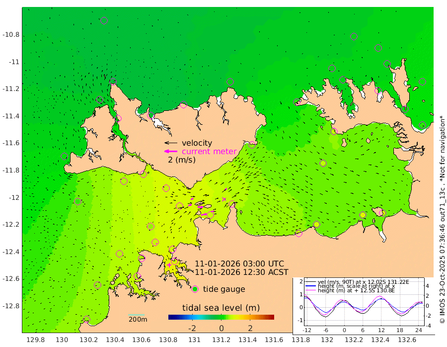 82cm/s 79T +4cm/s rms + 6cm/s 51T. Darwin_C1 52m 52cm/s 92T +4cm/s rms + 7cm/s -161T. Darwin_CW1 22m 51cm/s 72T +4cm/s rms + 8cm/s 61T. Darwin_CW2 34m 40cm/s 50T +3cm/s rms + 9cm/s 98T. Darwin_CW3 22m 84cm/s 89T +5cm/s rms + 7cm/s 88T. Darwin_C3 56m 43cm/s 66T +2cm/s rms + 9cm/s -126T. Darwin_CTbW 22m 5cm/s 40T +1cm/s rms + 1cm/s -47T. DARBGF 30m 10cm/s -30T +4cm/s rms + 3cm/s 80T. NRSDAR 19m -37cm Goodrich Bank 51cm Point Jenny 47cm Native Point 62cm Fish Reef 66cm Tapa Bay 15cm Point Fawcett (Offshore) 62cm Burge Point 61cm Munkunuwa 25cm Beagle A 77cm Parsons Bank 55cm Fenton Patches 82cm Hancox Shoal Area 80cm Nightcliff 85cm Darwin 68cm Charles Point Patches 74cm Glyde Point 90cm Chambers Bay 92cm Point Stuart 78cm Cape Hotham 70cm Christine Reef 103cm West Alligator Head 98cm East Field Island 75cm Two Hills Bay 55cm Camp Point 64cm Medina Inlet South -5cm South Barlow Point -15cm St. Asaph Bay -34cm Cape Van Dieman -31cm Snake Bay -26cm Cache Point -11cm Point Jahleel (Off) 23cm Cape Don -3cm Port Essington -1cm Smith Point - West -3cm NW Peacock Island -9cm North Of Jones Shoal -1cm Peacock Island 19cm Point David 1cm D'urville Point 23cm Copeland Island 18cm One Tree Point
