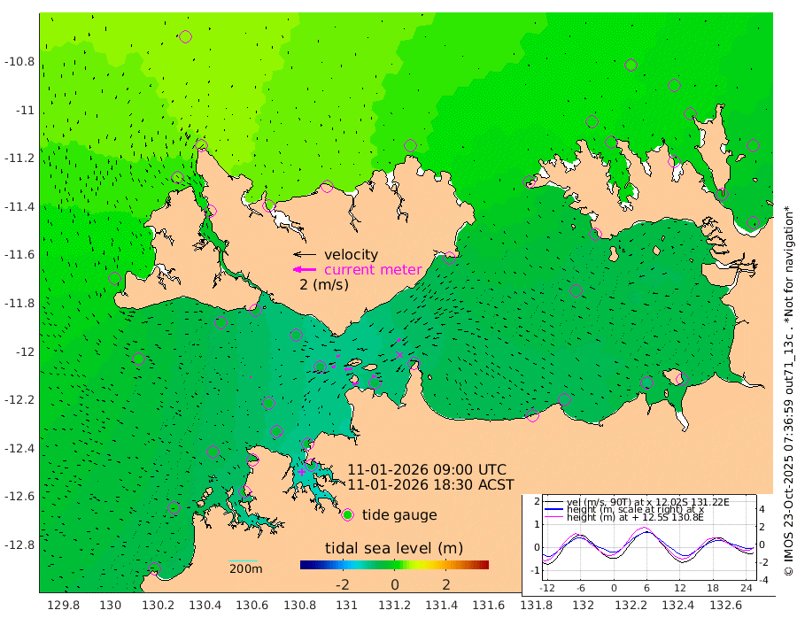 54cm/s -101T +4cm/s rms + 6cm/s 51T. Darwin_C1 52m 30cm/s -90T +4cm/s rms + 7cm/s -161T. Darwin_CW1 22m 34cm/s -106T +4cm/s rms + 8cm/s 61T. Darwin_CW2 34m 30cm/s -131T +3cm/s rms + 9cm/s 98T. Darwin_CW3 22m 64cm/s -91T +5cm/s rms + 7cm/s 88T. Darwin_C3 56m 30cm/s -116T +2cm/s rms + 9cm/s -126T. Darwin_CTbW 22m 9cm/s 109T +1cm/s rms + 1cm/s -47T. DARBGF 30m 14cm/s 144T +4cm/s rms + 3cm/s 80T. NRSDAR 19m 50cm Goodrich Bank -18cm Point Jenny -17cm Native Point -28cm Fish Reef -34cm Tapa Bay 20cm Point Fawcett (Offshore) -31cm Burge Point -31cm Munkunuwa 7cm Beagle A -50cm Parsons Bank -24cm Fenton Patches -52cm Hancox Shoal Area -42cm Nightcliff -59cm Darwin -40cm Charles Point Patches -54cm Glyde Point -69cm Chambers Bay -76cm Point Stuart -54cm Cape Hotham -50cm Christine Reef -86cm West Alligator Head -85cm East Field Island -56cm Two Hills Bay -43cm Camp Point -34cm Medina Inlet South 27cm South Barlow Point 41cm St. Asaph Bay 48cm Cape Van Dieman 43cm Snake Bay 45cm Cache Point 29cm Point Jahleel (Off) -8cm Cape Don 15cm Port Essington 18cm Smith Point - West 17cm NW Peacock Island 30cm North Of Jones Shoal 8cm Peacock Island -12cm Point David 12cm D'urville Point -15cm Copeland Island -7cm One Tree Point