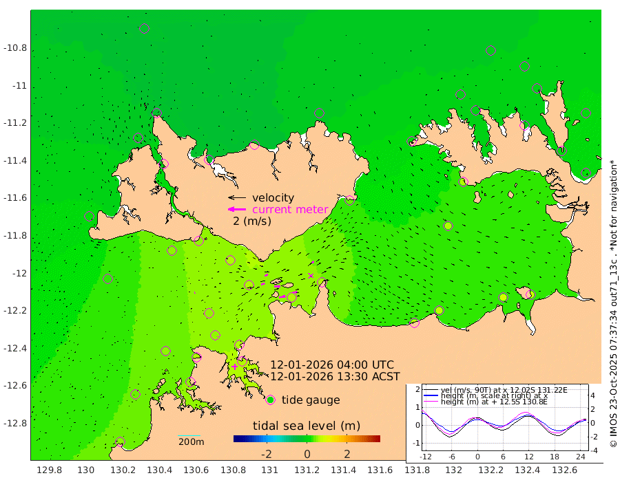 69cm/s 79T +4cm/s rms + 6cm/s 51T. Darwin_C1 52m 50cm/s 91T +4cm/s rms + 7cm/s -161T. Darwin_CW1 22m 42cm/s 73T +4cm/s rms + 8cm/s 61T. Darwin_CW2 34m 31cm/s 52T +3cm/s rms + 9cm/s 98T. Darwin_CW3 22m 71cm/s 89T +5cm/s rms + 7cm/s 88T. Darwin_C3 56m 39cm/s 66T +2cm/s rms + 9cm/s -126T. Darwin_CTbW 22m 7cm/s 69T +1cm/s rms + 1cm/s -47T. DARBGF 30m 5cm/s 2T +4cm/s rms + 3cm/s 80T. NRSDAR 19m -26cm Goodrich Bank 46cm Point Jenny 42cm Native Point 54cm Fish Reef 57cm Tapa Bay 20cm Point Fawcett (Offshore) 48cm Burge Point 49cm Munkunuwa 26cm Beagle A 58cm Parsons Bank 46cm Fenton Patches 65cm Hancox Shoal Area 67cm Nightcliff 65cm Darwin 53cm Charles Point Patches 59cm Glyde Point 75cm Chambers Bay 75cm Point Stuart 63cm Cape Hotham 58cm Christine Reef 85cm West Alligator Head 81cm East Field Island 61cm Two Hills Bay 43cm Camp Point 52cm Medina Inlet South -2cm South Barlow Point -6cm St. Asaph Bay -24cm Cape Van Dieman -24cm Snake Bay -17cm Cache Point -6cm Point Jahleel (Off) 19cm Cape Don -4cm Port Essington -1cm Smith Point - West -4cm NW Peacock Island -6cm North Of Jones Shoal -1cm Peacock Island 8cm Point David -1cm D'urville Point 12cm Copeland Island 9cm One Tree Point