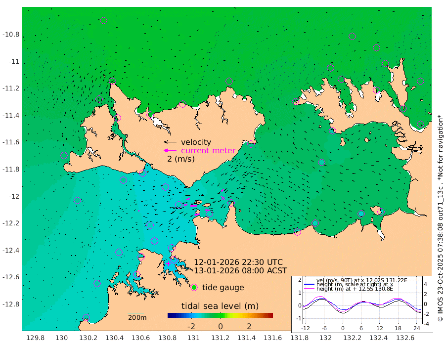 92cm/s -101T +4cm/s rms + 6cm/s 51T. Darwin_C1 52m 74cm/s -91T +4cm/s rms + 7cm/s -161T. Darwin_CW1 22m 53cm/s -105T +4cm/s rms + 8cm/s 61T. Darwin_CW2 34m 47cm/s -135T +3cm/s rms + 9cm/s 98T. Darwin_CW3 22m 97cm/s -90T +5cm/s rms + 7cm/s 88T. Darwin_C3 56m 56cm/s -115T +2cm/s rms + 9cm/s -126T. Darwin_CTbW 22m 14cm/s -108T +1cm/s rms + 1cm/s -47T. DARBGF 30m 6cm/s -106T +4cm/s rms + 3cm/s 80T. NRSDAR 19m -21cm Goodrich Bank -118cm Point Jenny -114cm Native Point -131cm Fish Reef -127cm Tapa Bay -82cm Point Fawcett (Offshore) -135cm Burge Point -108cm Munkunuwa -109cm Beagle A -128cm Parsons Bank -133cm Fenton Patches -132cm Hancox Shoal Area -146cm Nightcliff -148cm Darwin -136cm Charles Point Patches -128cm Glyde Point -128cm Chambers Bay -128cm Point Stuart -123cm Cape Hotham -114cm Christine Reef -138cm West Alligator Head -138cm East Field Island -117cm Two Hills Bay -103cm Camp Point -128cm Medina Inlet South -59cm South Barlow Point -48cm St. Asaph Bay -23cm Cape Van Dieman -29cm Snake Bay -34cm Cache Point -43cm Point Jahleel (Off) -73cm Cape Don -44cm Port Essington -45cm Smith Point - West -42cm NW Peacock Island -42cm North Of Jones Shoal -15cm Peacock Island -48cm Point David -45cm D'urville Point -49cm Copeland Island -54cm One Tree Point