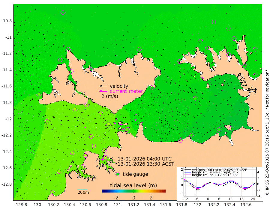 75cm/s 78T +4cm/s rms + 6cm/s 51T. Darwin_C1 52m 51cm/s 90T +4cm/s rms + 7cm/s -161T. Darwin_CW1 22m 47cm/s 73T +4cm/s rms + 8cm/s 61T. Darwin_CW2 34m 26cm/s 57T +3cm/s rms + 9cm/s 98T. Darwin_CW3 22m 70cm/s 88T +5cm/s rms + 7cm/s 88T. Darwin_C3 56m 47cm/s 65T +2cm/s rms + 9cm/s -126T. Darwin_CTbW 22m 23cm/s 87T +1cm/s rms + 1cm/s -47T. DARBGF 30m 18cm/s 111T +4cm/s rms + 3cm/s 80T. NRSDAR 19m -6cm Goodrich Bank 55cm Point Jenny 52cm Native Point 55cm Fish Reef 63cm Tapa Bay 36cm Point Fawcett (Offshore) 46cm Burge Point 58cm Munkunuwa 37cm Beagle A 56cm Parsons Bank 47cm Fenton Patches 60cm Hancox Shoal Area 66cm Nightcliff 57cm Darwin 54cm Charles Point Patches 37cm Glyde Point 33cm Chambers Bay 24cm Point Stuart 32cm Cape Hotham 23cm Christine Reef 27cm West Alligator Head 14cm East Field Island 27cm Two Hills Bay 14cm Camp Point 56cm Medina Inlet South 19cm South Barlow Point 16cm St. Asaph Bay -3cm Cape Van Dieman -3cm Snake Bay -1cm Cache Point 5cm Point Jahleel (Off) 15cm Cape Don 4cm Port Essington 10cm Smith Point - West 4cm NW Peacock Island 5cm North Of Jones Shoal 2cm Peacock Island 7cm Point David 8cm D'urville Point 9cm Copeland Island 7cm One Tree Point