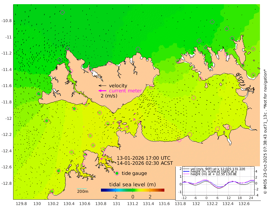 40cm/s 78T +4cm/s rms + 6cm/s 51T. Darwin_C1 52m 32cm/s 85T +4cm/s rms + 7cm/s -161T. Darwin_CW1 22m 22cm/s 74T +4cm/s rms + 8cm/s 61T. Darwin_CW2 34m 24cm/s 45T +3cm/s rms + 9cm/s 98T. Darwin_CW3 22m 44cm/s 90T +5cm/s rms + 7cm/s 88T. Darwin_C3 56m 25cm/s 64T +2cm/s rms + 9cm/s -126T. Darwin_CTbW 22m 7cm/s -68T +1cm/s rms + 1cm/s -47T. DARBGF 30m 12cm/s -42T +4cm/s rms + 3cm/s 80T. NRSDAR 19m -19cm Goodrich Bank 34cm Point Jenny 32cm Native Point 47cm Fish Reef 40cm Tapa Bay 6cm Point Fawcett (Offshore) 51cm Burge Point 29cm Munkunuwa 26cm Beagle A 55cm Parsons Bank 49cm Fenton Patches 55cm Hancox Shoal Area 57cm Nightcliff 68cm Darwin 53cm Charles Point Patches 68cm Glyde Point 77cm Chambers Bay 87cm Point Stuart 68cm Cape Hotham 66cm Christine Reef 93cm West Alligator Head 99cm East Field Island 71cm Two Hills Bay 62cm Camp Point 46cm Medina Inlet South 1cm South Barlow Point -13cm St. Asaph Bay -18cm Cape Van Dieman -11cm Snake Bay -12cm Cache Point -1cm Point Jahleel (Off) 33cm Cape Don 13cm Port Essington 10cm Smith Point - West 12cm NW Peacock Island 4cm North Of Jones Shoal 4cm Peacock Island 33cm Point David 16cm D'urville Point 36cm Copeland Island 35cm One Tree Point