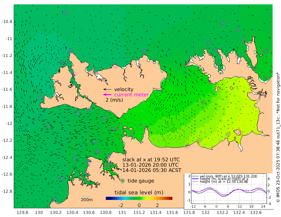 53cm/s -103T +4cm/s rms + 6cm/s 51T. Darwin_C1 52m 19cm/s -92T +4cm/s rms + 7cm/s -161T. Darwin_CW1 22m 40cm/s -105T +4cm/s rms + 8cm/s 61T. Darwin_CW2 34m 11cm/s -110T +3cm/s rms + 9cm/s 98T. Darwin_CW3 22m 49cm/s -92T +5cm/s rms + 7cm/s 88T. Darwin_C3 56m 40cm/s -115T +2cm/s rms + 9cm/s -126T. Darwin_CTbW 22m 40cm/s -90T +1cm/s rms + 1cm/s -47T. DARBGF 30m 39cm/s -61T +4cm/s rms + 3cm/s 80T. NRSDAR 19m -67cm Goodrich Bank -83cm Point Jenny -85cm Native Point -73cm Fish Reef -85cm Tapa Bay -89cm Point Fawcett (Offshore) -70cm Burge Point -83cm Munkunuwa -82cm Beagle A -70cm Parsons Bank -72cm Fenton Patches -68cm Hancox Shoal Area -82cm Nightcliff -67cm Darwin -77cm Charles Point Patches -25cm Glyde Point 10cm Chambers Bay 35cm Point Stuart -10cm Cape Hotham 5cm Christine Reef 42cm West Alligator Head 64cm East Field Island 3cm Two Hills Bay 3cm Camp Point -80cm Medina Inlet South -86cm South Barlow Point -85cm St. Asaph Bay -70cm Cape Van Dieman -72cm Snake Bay -67cm Cache Point -60cm Point Jahleel (Off) -39cm Cape Don -49cm Port Essington -57cm Smith Point - West -51cm NW Peacock Island -59cm North Of Jones Shoal -19cm Peacock Island -33cm Point David -52cm D'urville Point -29cm Copeland Island -35cm One Tree Point