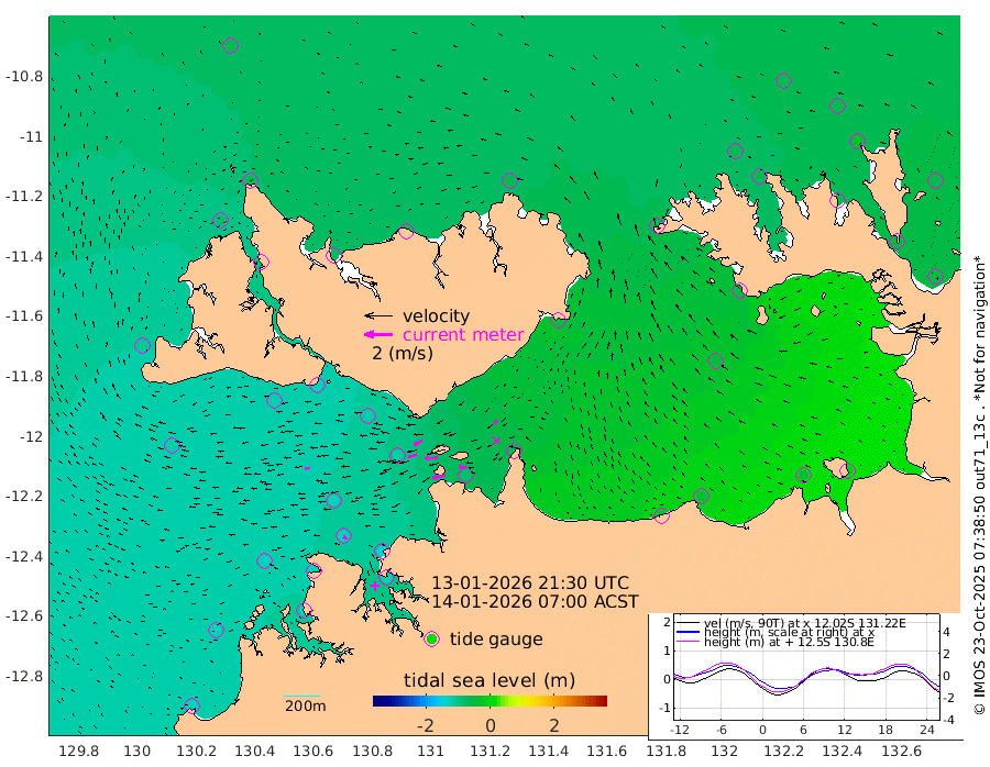 95cm/s -102T +4cm/s rms + 6cm/s 51T. Darwin_C1 52m 58cm/s -90T +4cm/s rms + 7cm/s -161T. Darwin_CW1 22m 62cm/s -106T +4cm/s rms + 8cm/s 61T. Darwin_CW2 34m 33cm/s -129T +3cm/s rms + 9cm/s 98T. Darwin_CW3 22m 90cm/s -91T +5cm/s rms + 7cm/s 88T. Darwin_C3 56m 66cm/s -115T +2cm/s rms + 9cm/s -126T. Darwin_CTbW 22m 39cm/s -93T +1cm/s rms + 1cm/s -47T. DARBGF 30m 33cm/s -63T +4cm/s rms + 3cm/s 80T. NRSDAR 19m -61cm Goodrich Bank -127cm Point Jenny -126cm Native Point -126cm Fish Reef -134cm Tapa Bay -110cm Point Fawcett (Offshore) -125cm Burge Point -120cm Munkunuwa -120cm Beagle A -122cm Parsons Bank -126cm Fenton Patches -123cm Hancox Shoal Area -141cm Nightcliff -131cm Darwin -132cm Charles Point Patches -87cm Glyde Point -58cm Chambers Bay -40cm Point Stuart -72cm Cape Hotham -54cm Christine Reef -39cm West Alligator Head -21cm East Field Island -59cm Two Hills Bay -52cm Camp Point -129cm Medina Inlet South -96cm South Barlow Point -88cm St. Asaph Bay -64cm Cape Van Dieman -70cm Snake Bay -67cm Cache Point -67cm Point Jahleel (Off) -69cm Cape Don -61cm Port Essington -67cm Smith Point - West -61cm NW Peacock Island -66cm North Of Jones Shoal -23cm Peacock Island -53cm Point David -64cm D'urville Point -51cm Copeland Island -58cm One Tree Point