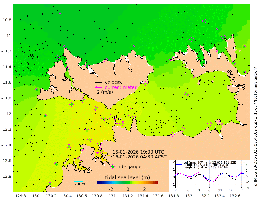 60cm/s 77T +4cm/s rms + 6cm/s 51T. Darwin_C1 52m 56cm/s 89T +4cm/s rms + 7cm/s -161T. Darwin_CW1 22m 22cm/s 74T +4cm/s rms + 8cm/s 61T. Darwin_CW2 34m 39cm/s 40T +3cm/s rms + 9cm/s 98T. Darwin_CW3 22m 40cm/s 90T +5cm/s rms + 7cm/s 88T. Darwin_C3 56m 30cm/s 66T +2cm/s rms + 9cm/s -126T. Darwin_CTbW 22m 1cm/s 10T +1cm/s rms + 1cm/s -47T. DARBGF 30m 3cm/s 23T +4cm/s rms + 3cm/s 80T. NRSDAR 19m -32cm Goodrich Bank 31cm Point Jenny 30cm Native Point 44cm Fish Reef 41cm Tapa Bay 0cm Point Fawcett (Offshore) 50cm Burge Point 33cm Munkunuwa 21cm Beagle A 55cm Parsons Bank 46cm Fenton Patches 54cm Hancox Shoal Area 59cm Nightcliff 66cm Darwin 51cm Charles Point Patches 58cm Glyde Point 55cm Chambers Bay 65cm Point Stuart 57cm Cape Hotham 45cm Christine Reef 69cm West Alligator Head 70cm East Field Island 52cm Two Hills Bay 49cm Camp Point 45cm Medina Inlet South -5cm South Barlow Point -20cm St. Asaph Bay -29cm Cape Van Dieman -21cm Snake Bay -25cm Cache Point -13cm Point Jahleel (Off) 20cm Cape Don 2cm Port Essington -2cm Smith Point - West 1cm NW Peacock Island -6cm North Of Jones Shoal 1cm Peacock Island 30cm Point David 6cm D'urville Point 33cm Copeland Island 28cm One Tree Point