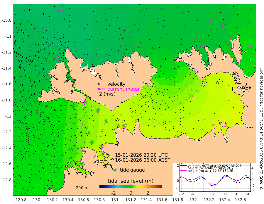 21cm/s 83T +4cm/s rms + 6cm/s 51T. Darwin_C1 52m 42cm/s 92T +4cm/s rms + 7cm/s -161T. Darwin_CW1 22m 5cm/s 43T +4cm/s rms + 8cm/s 61T. Darwin_CW2 34m 28cm/s 37T +3cm/s rms + 9cm/s 98T. Darwin_CW3 22m 18cm/s 92T +5cm/s rms + 7cm/s 88T. Darwin_C3 56m 1cm/s 82T +2cm/s rms + 9cm/s -126T. Darwin_CTbW 22m 25cm/s -85T +1cm/s rms + 1cm/s -47T. DARBGF 30m 29cm/s -57T +4cm/s rms + 3cm/s 80T. NRSDAR 19m -70cm Goodrich Bank -26cm Point Jenny -29cm Native Point -8cm Fish Reef -16cm Tapa Bay -55cm Point Fawcett (Offshore) -1cm Burge Point -17cm Munkunuwa -36cm Beagle A 5cm Parsons Bank -7cm Fenton Patches 6cm Hancox Shoal Area 2cm Nightcliff 17cm Darwin -2cm Charles Point Patches 30cm Glyde Point 50cm Chambers Bay 69cm Point Stuart 39cm Cape Hotham 36cm Christine Reef 78cm West Alligator Head 91cm East Field Island 40cm Two Hills Bay 36cm Camp Point -9cm Medina Inlet South -57cm South Barlow Point -68cm St. Asaph Bay -70cm Cape Van Dieman -65cm Snake Bay -65cm Cache Point -50cm Point Jahleel (Off) -14cm Cape Don -34cm Port Essington -42cm Smith Point - West -37cm NW Peacock Island -45cm North Of Jones Shoal -13cm Peacock Island -6cm Point David -34cm D'urville Point -1cm Copeland Island -8cm One Tree Point