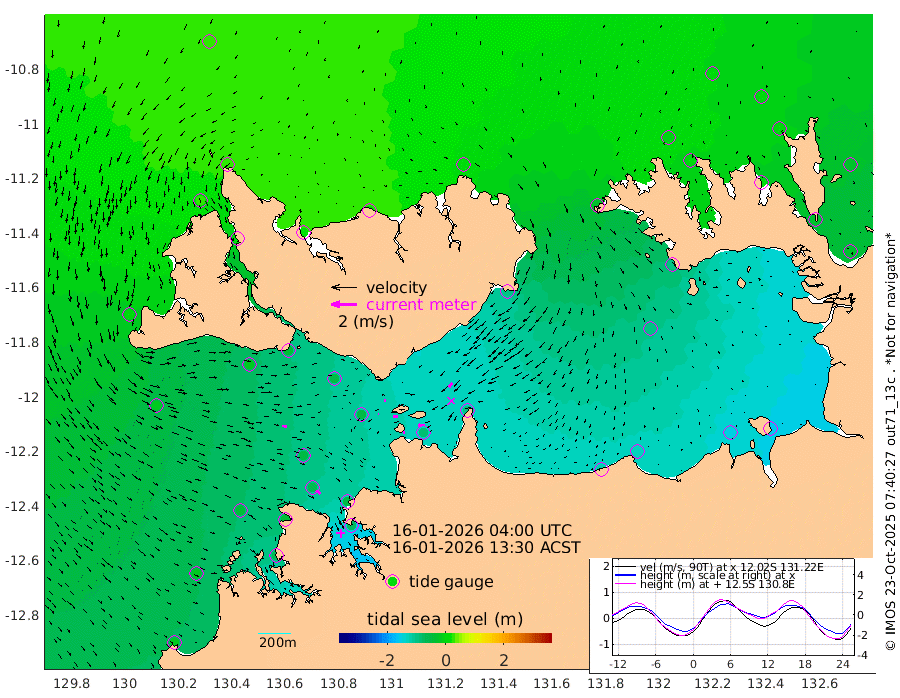 13cm/s -96T +4cm/s rms + 6cm/s 51T. Darwin_C1 52m 49cm/s -93T +4cm/s rms + 7cm/s -161T. Darwin_CW1 22m 2cm/s -85T +4cm/s rms + 8cm/s 61T. Darwin_CW2 34m 42cm/s -146T +3cm/s rms + 9cm/s 98T. Darwin_CW3 22m 36cm/s -88T +5cm/s rms + 7cm/s 88T. Darwin_C3 56m 14cm/s 62T +2cm/s rms + 9cm/s -126T. Darwin_CTbW 22m 36cm/s 98T +1cm/s rms + 1cm/s -47T. DARBGF 30m 42cm/s 126T +4cm/s rms + 3cm/s 80T. NRSDAR 19m 23cm Goodrich Bank -20cm Point Jenny -20cm Native Point -40cm Fish Reef -36cm Tapa Bay 6cm Point Fawcett (Offshore) -57cm Burge Point -22cm Munkunuwa -15cm Beagle A -52cm Parsons Bank -47cm Fenton Patches -56cm Hancox Shoal Area -50cm Nightcliff -78cm Darwin -61cm Charles Point Patches -89cm Glyde Point -114cm Chambers Bay -134cm Point Stuart -98cm Cape Hotham -95cm Christine Reef -147cm West Alligator Head -168cm East Field Island -98cm Two Hills Bay -99cm Camp Point -43cm Medina Inlet South 15cm South Barlow Point 24cm St. Asaph Bay 25cm Cape Van Dieman 17cm Snake Bay 17cm Cache Point 4cm Point Jahleel (Off) -30cm Cape Don -5cm Port Essington 6cm Smith Point - West 0cm NW Peacock Island 5cm North Of Jones Shoal 0cm Peacock Island -27cm Point David 1cm D'urville Point -28cm Copeland Island -27cm One Tree Point