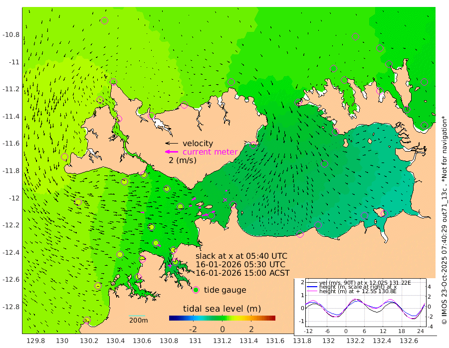 88cm/s 77T +4cm/s rms + 6cm/s 51T. Darwin_C1 52m 49cm/s 87T +4cm/s rms + 7cm/s -161T. Darwin_CW1 22m 41cm/s 74T +4cm/s rms + 8cm/s 61T. Darwin_CW2 34m 17cm/s 81T +3cm/s rms + 9cm/s 98T. Darwin_CW3 22m 35cm/s 86T +5cm/s rms + 7cm/s 88T. Darwin_C3 56m 68cm/s 64T +2cm/s rms + 9cm/s -126T. Darwin_CTbW 22m 52cm/s 92T +1cm/s rms + 1cm/s -47T. DARBGF 30m 53cm/s 120T +4cm/s rms + 3cm/s 80T. NRSDAR 19m 36cm Goodrich Bank 82cm Point Jenny 81cm Native Point 69cm Fish Reef 77cm Tapa Bay 71cm Point Fawcett (Offshore) 59cm Burge Point 77cm Munkunuwa 79cm Beagle A 55cm Parsons Bank 69cm Fenton Patches 54cm Hancox Shoal Area 72cm Nightcliff 46cm Darwin 57cm Charles Point Patches 5cm Glyde Point -38cm Chambers Bay -62cm Point Stuart -17cm Cape Hotham -26cm Christine Reef -70cm West Alligator Head -96cm East Field Island -31cm Two Hills Bay -31cm Camp Point 67cm Medina Inlet South 64cm South Barlow Point 63cm St. Asaph Bay 40cm Cape Van Dieman 35cm Snake Bay 36cm Cache Point 30cm Point Jahleel (Off) 14cm Cape Don 20cm Port Essington 31cm Smith Point - West 21cm NW Peacock Island 25cm North Of Jones Shoal 7cm Peacock Island -3cm Point David 24cm D'urville Point -4cm Copeland Island -1cm One Tree Point
