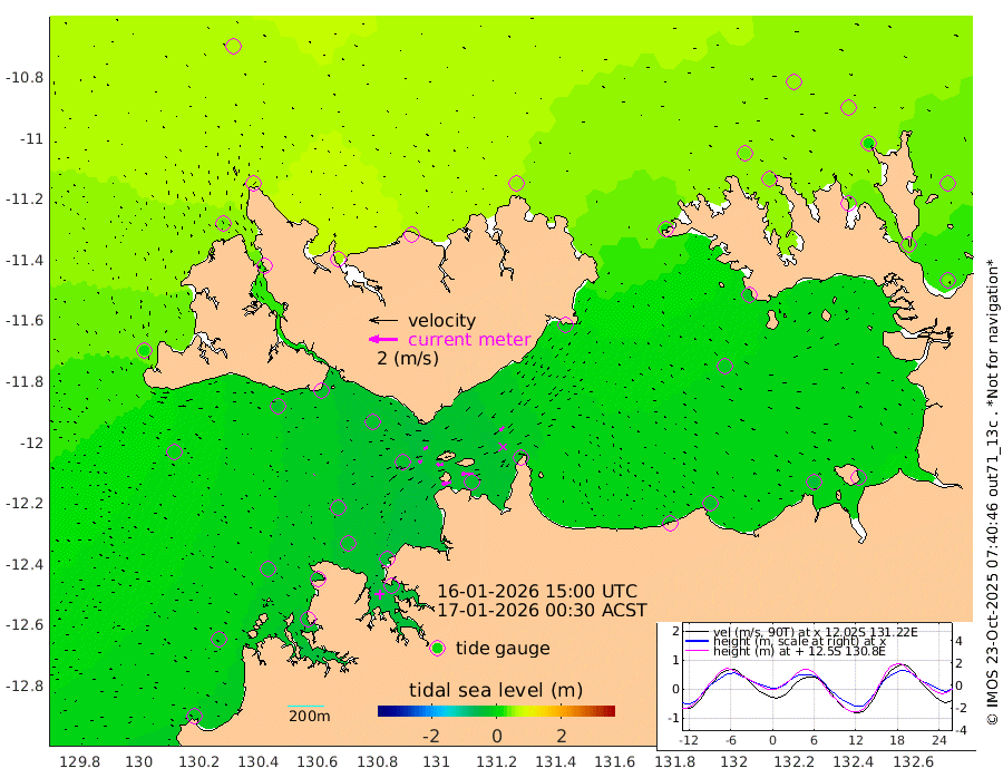 69cm/s -100T +4cm/s rms + 6cm/s 51T. Darwin_C1 52m 84cm/s -91T +4cm/s rms + 7cm/s -161T. Darwin_CW1 22m 26cm/s -107T +4cm/s rms + 8cm/s 61T. Darwin_CW2 34m 40cm/s -135T +3cm/s rms + 9cm/s 98T. Darwin_CW3 22m 47cm/s -92T +5cm/s rms + 7cm/s 88T. Darwin_C3 56m 31cm/s -115T +2cm/s rms + 9cm/s -126T. Darwin_CTbW 22m 2cm/s -140T +1cm/s rms + 1cm/s -47T. DARBGF 30m 4cm/s -124T +4cm/s rms + 3cm/s 80T. NRSDAR 19m 60cm Goodrich Bank -16cm Point Jenny -12cm Native Point -27cm Fish Reef -24cm Tapa Bay 22cm Point Fawcett (Offshore) -29cm Burge Point -29cm Munkunuwa -4cm Beagle A -31cm Parsons Bank -30cm Fenton Patches -33cm Hancox Shoal Area -37cm Nightcliff -38cm Darwin -25cm Charles Point Patches -27cm Glyde Point -30cm Chambers Bay -31cm Point Stuart -22cm Cape Hotham -21cm Christine Reef -38cm West Alligator Head -39cm East Field Island -15cm Two Hills Bay -11cm Camp Point -25cm Medina Inlet South 32cm South Barlow Point 39cm St. Asaph Bay 59cm Cape Van Dieman 62cm Snake Bay 57cm Cache Point 46cm Point Jahleel (Off) 22cm Cape Don 43cm Port Essington 42cm Smith Point - West 47cm NW Peacock Island 49cm North Of Jones Shoal 17cm Peacock Island 42cm Point David 44cm D'urville Point 37cm Copeland Island 40cm One Tree Point